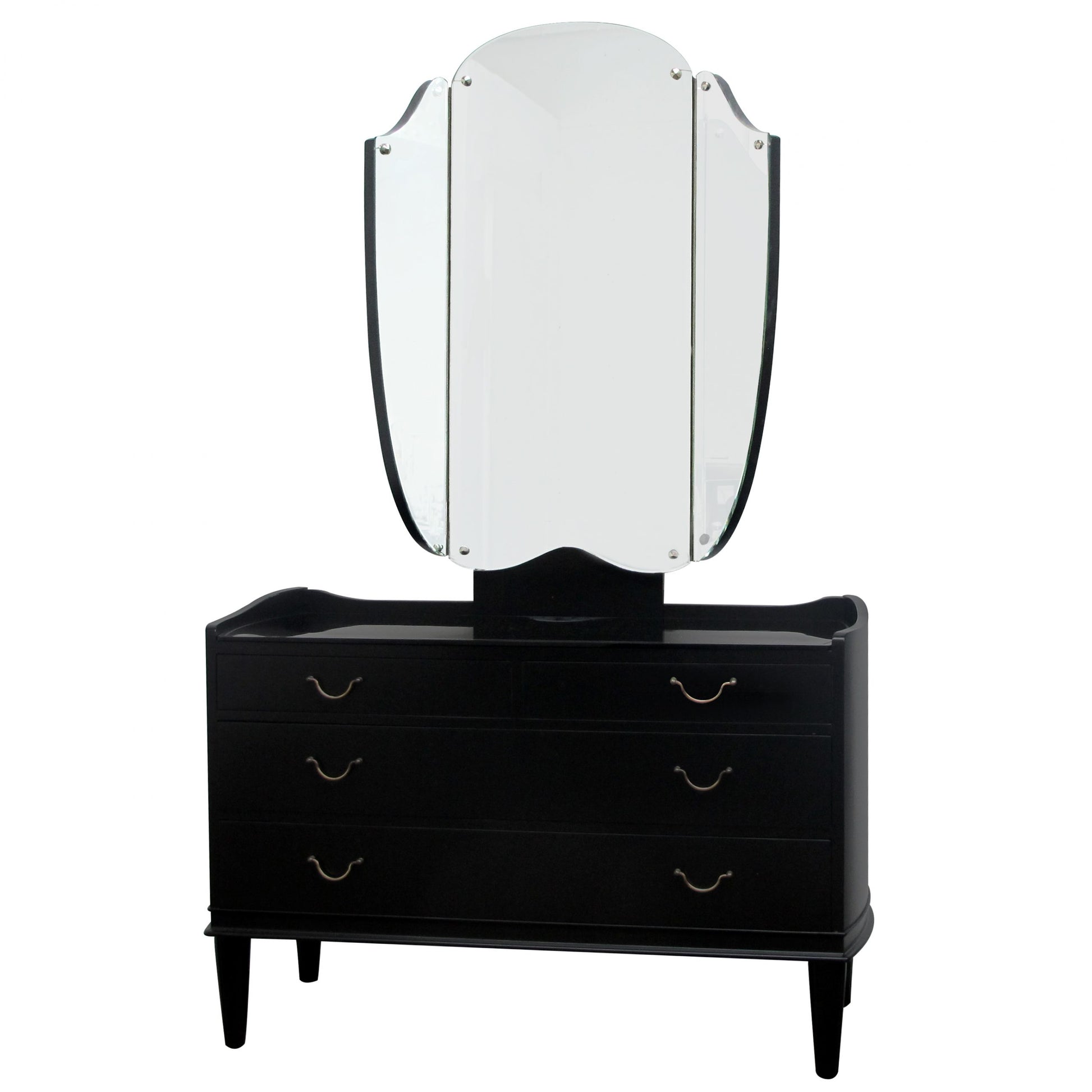 1940s Danish Ebonised Vanity Dressing Table With Triptych Mirror