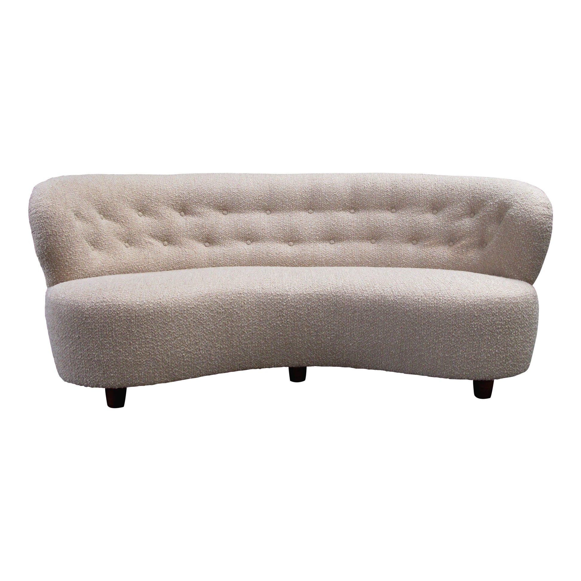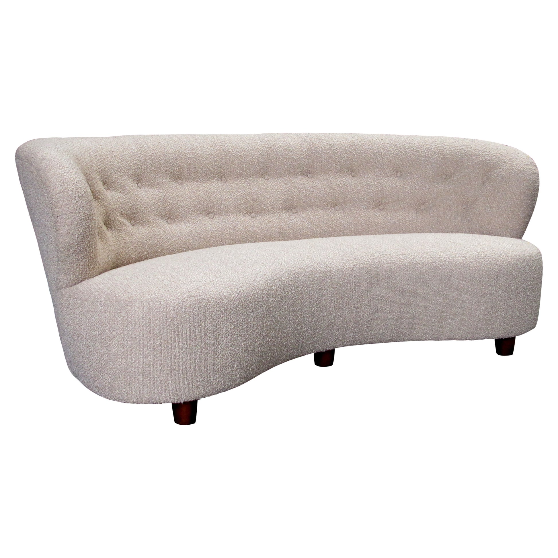 1940s Danish Large Curved Sofa with Buttoned Backrest Newly Upholstered