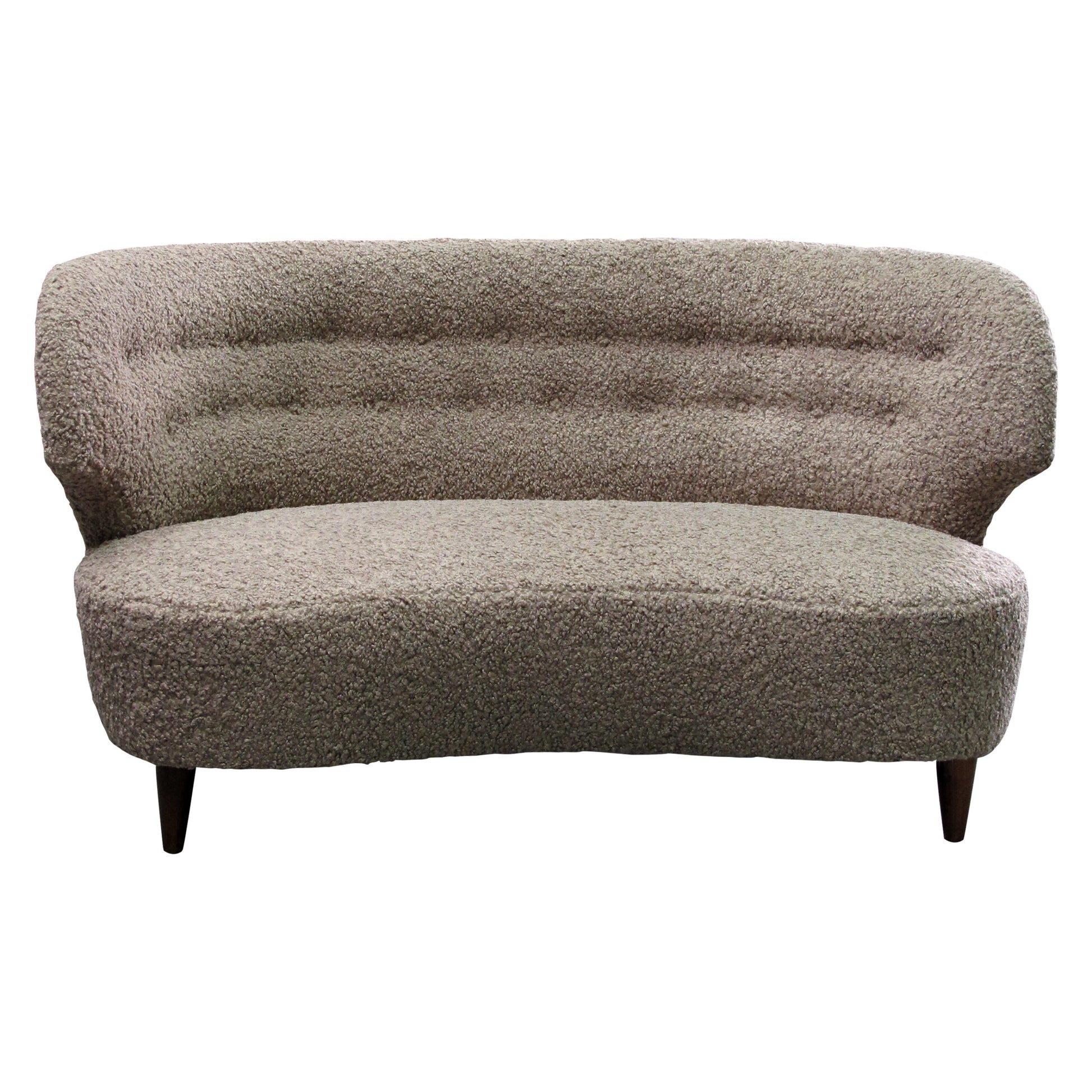1940s Finnish Curved Sofa with Buttoned Backrest by Carl-Johan Boman