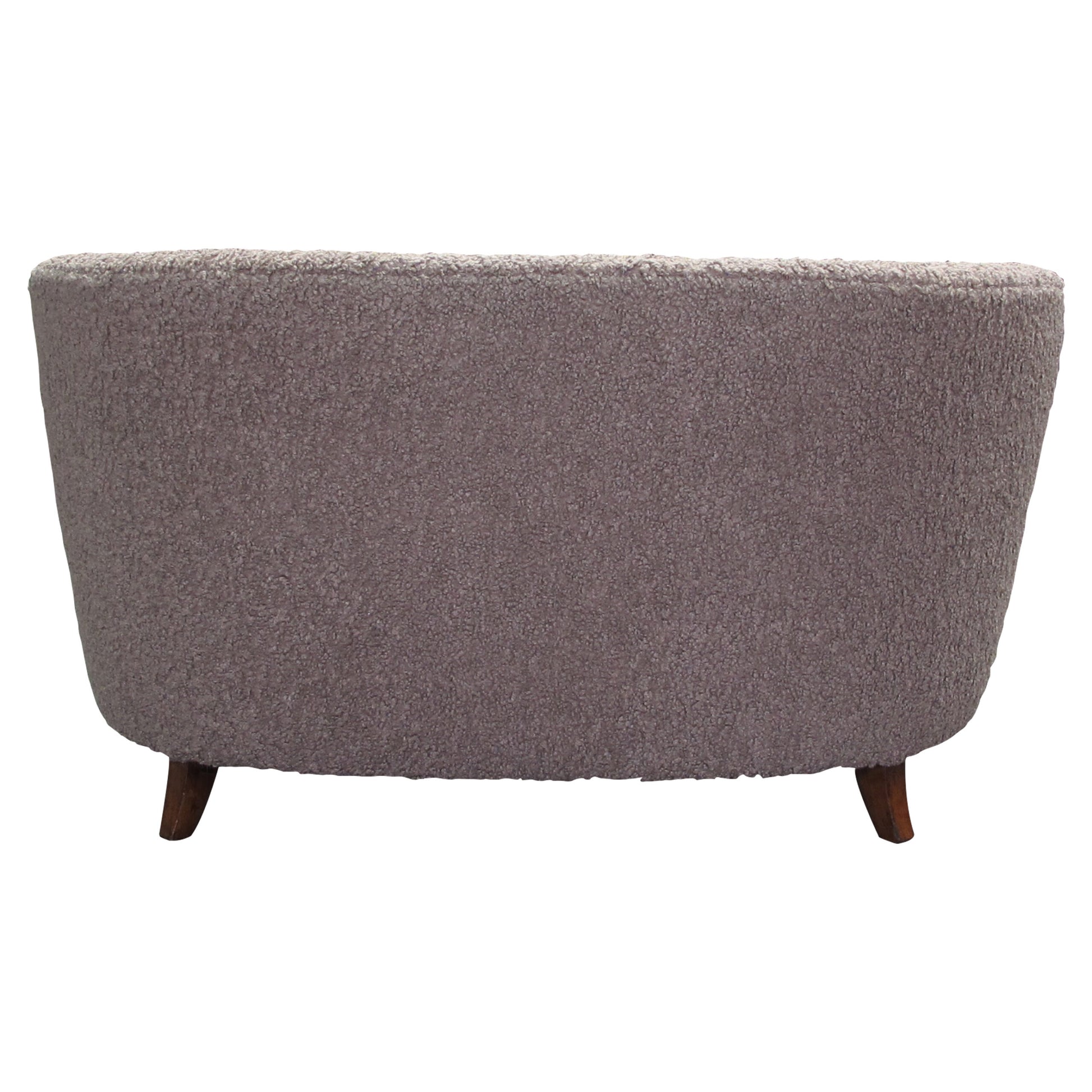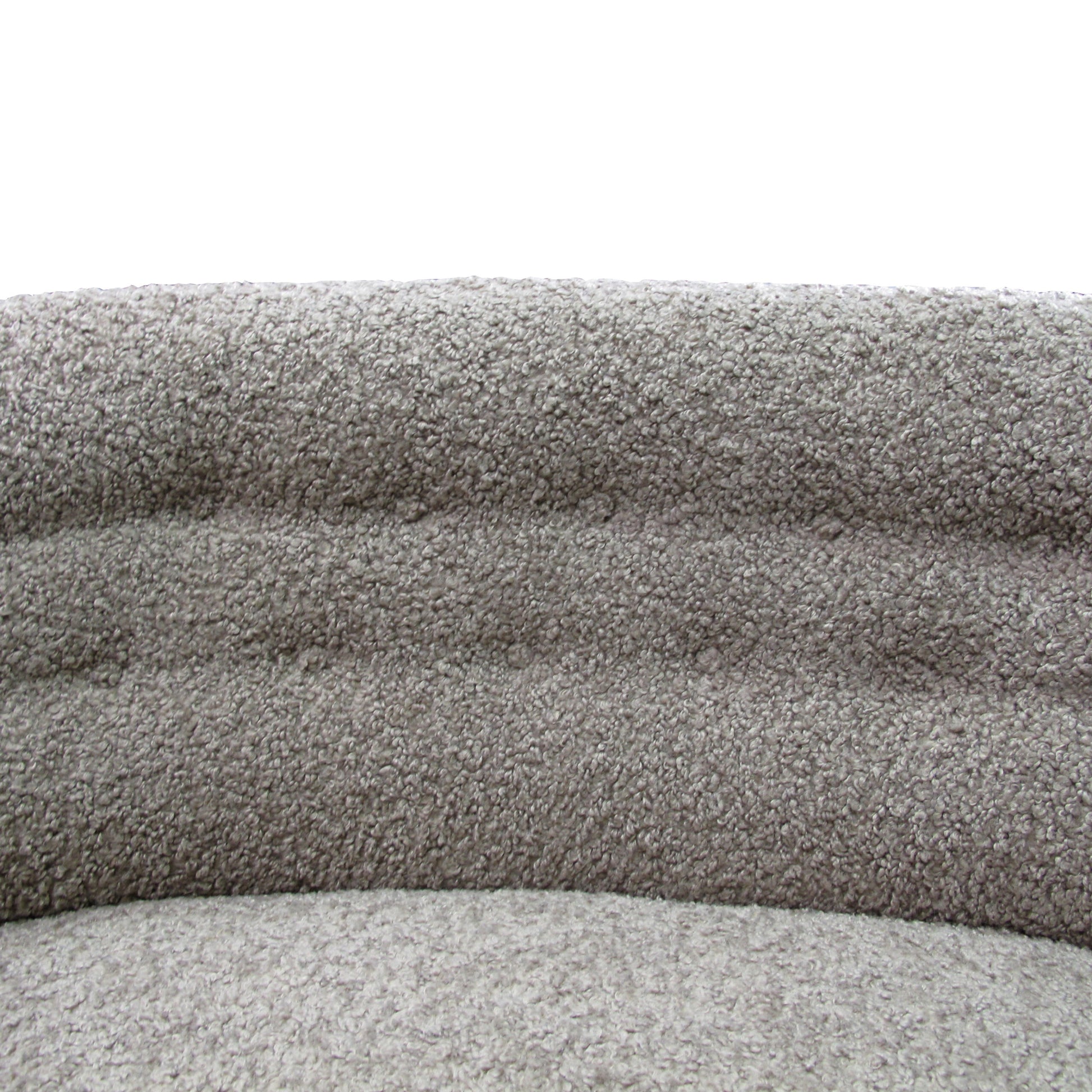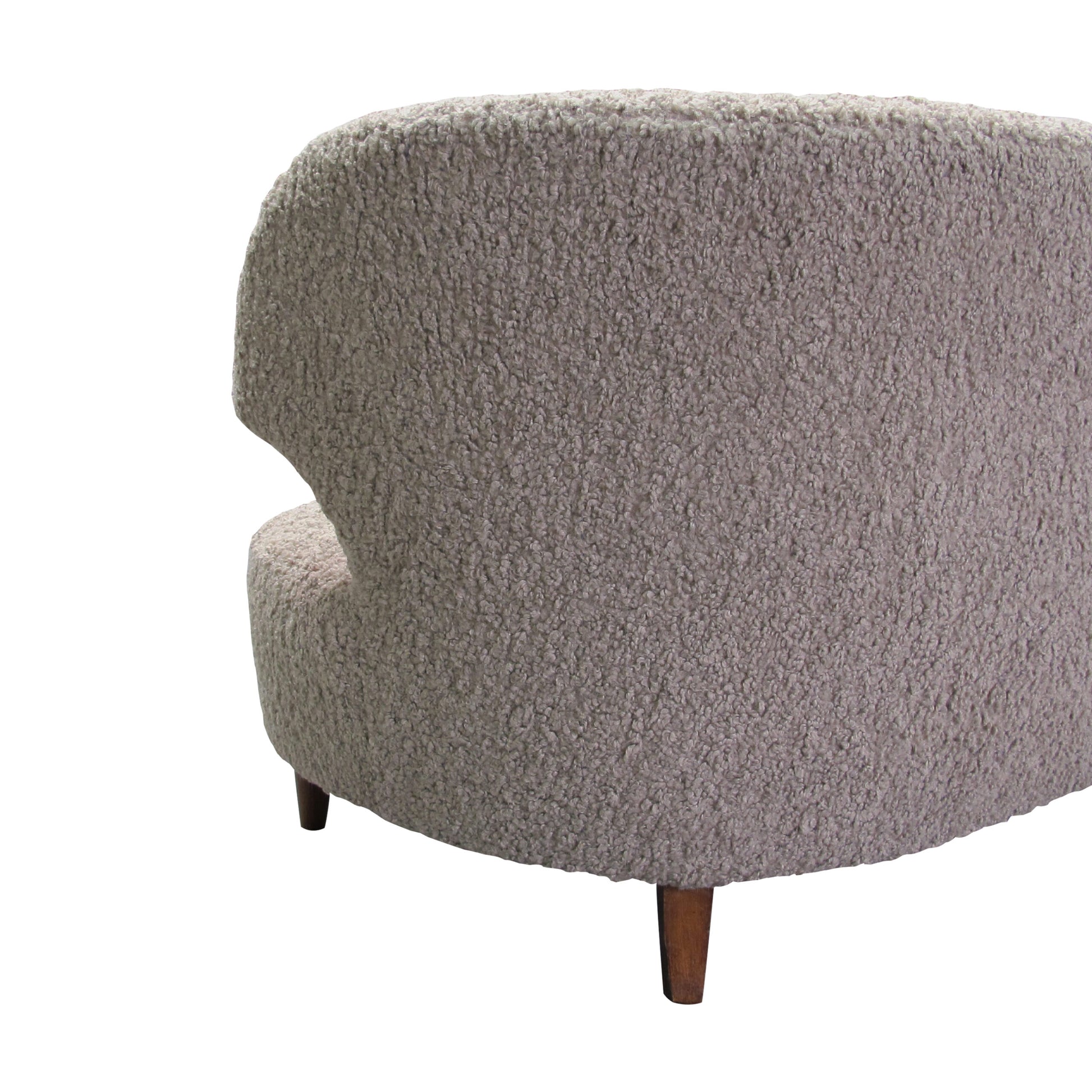 The oak frame and legs are sturdy and well-made, and the new short-pile boucle fabric upholstery is soft and inviting.