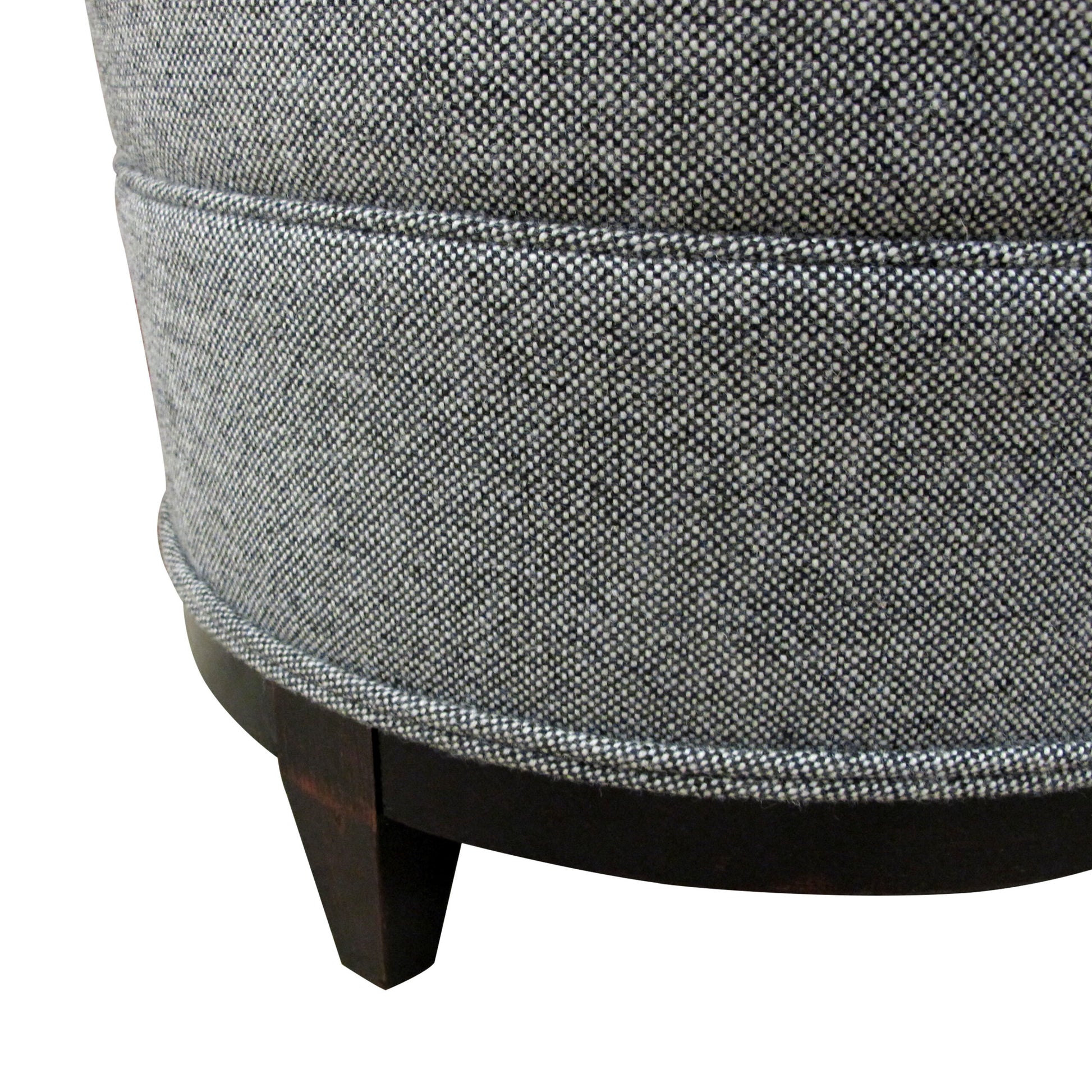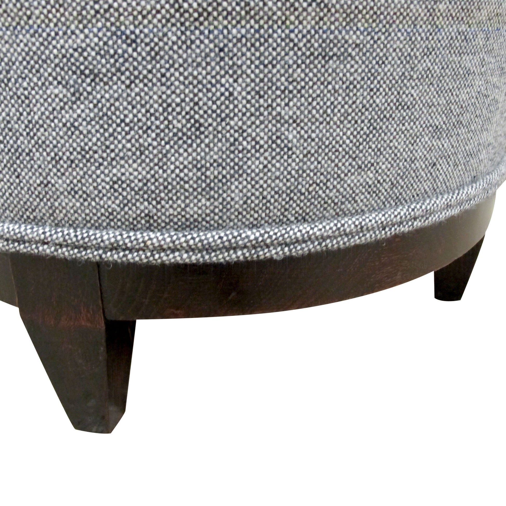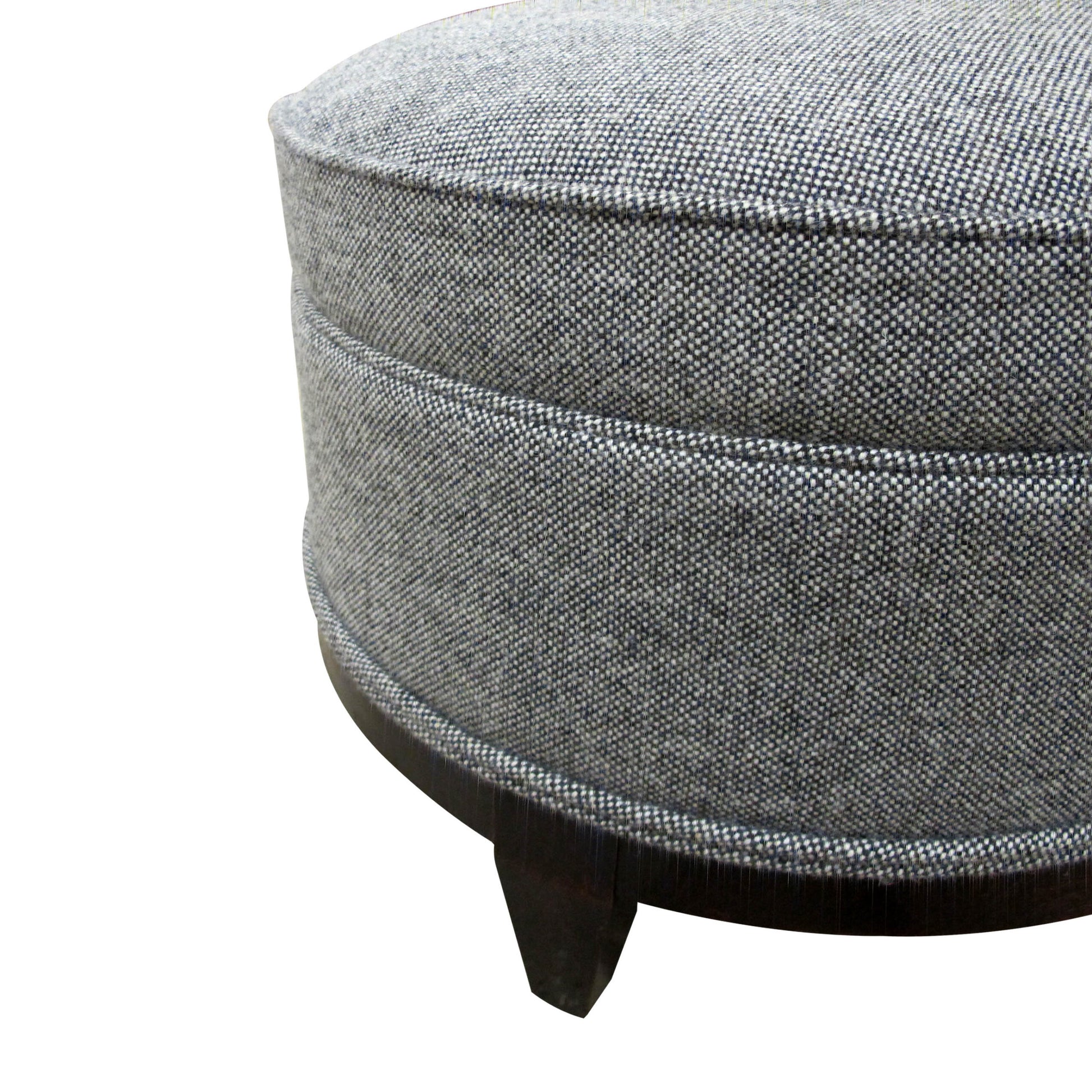 This is a French 1940s oak frame footstool featuring a design that combines elegance and functionality. Its robust oak frame showcases a classic silhouette with slightly tapered legs, emblematic of mid-century craftsmanship. The stool has been newly upholstered in a sophisticated textured grey fabric, lending it a modern yet neutral aesthetic suitable for various interior styles.