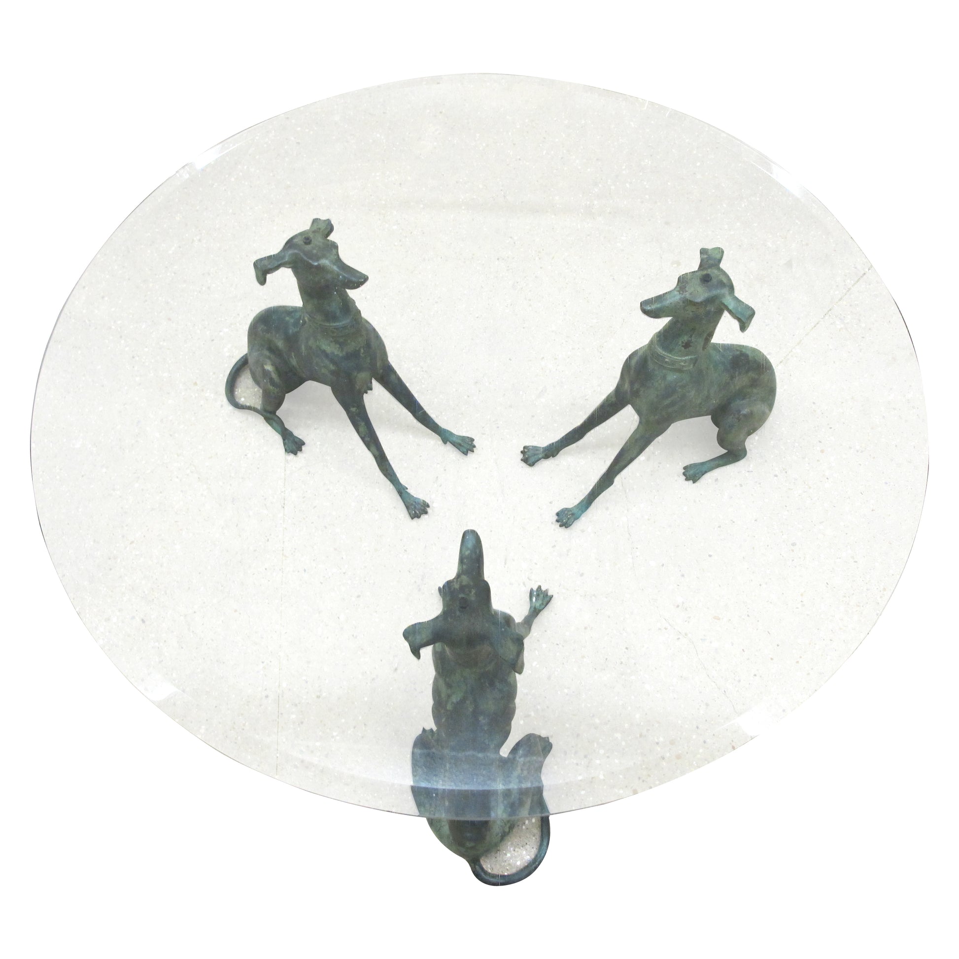 1950s Belgian Coffee Table with Bronze Whippet Sculptures and Glass Top