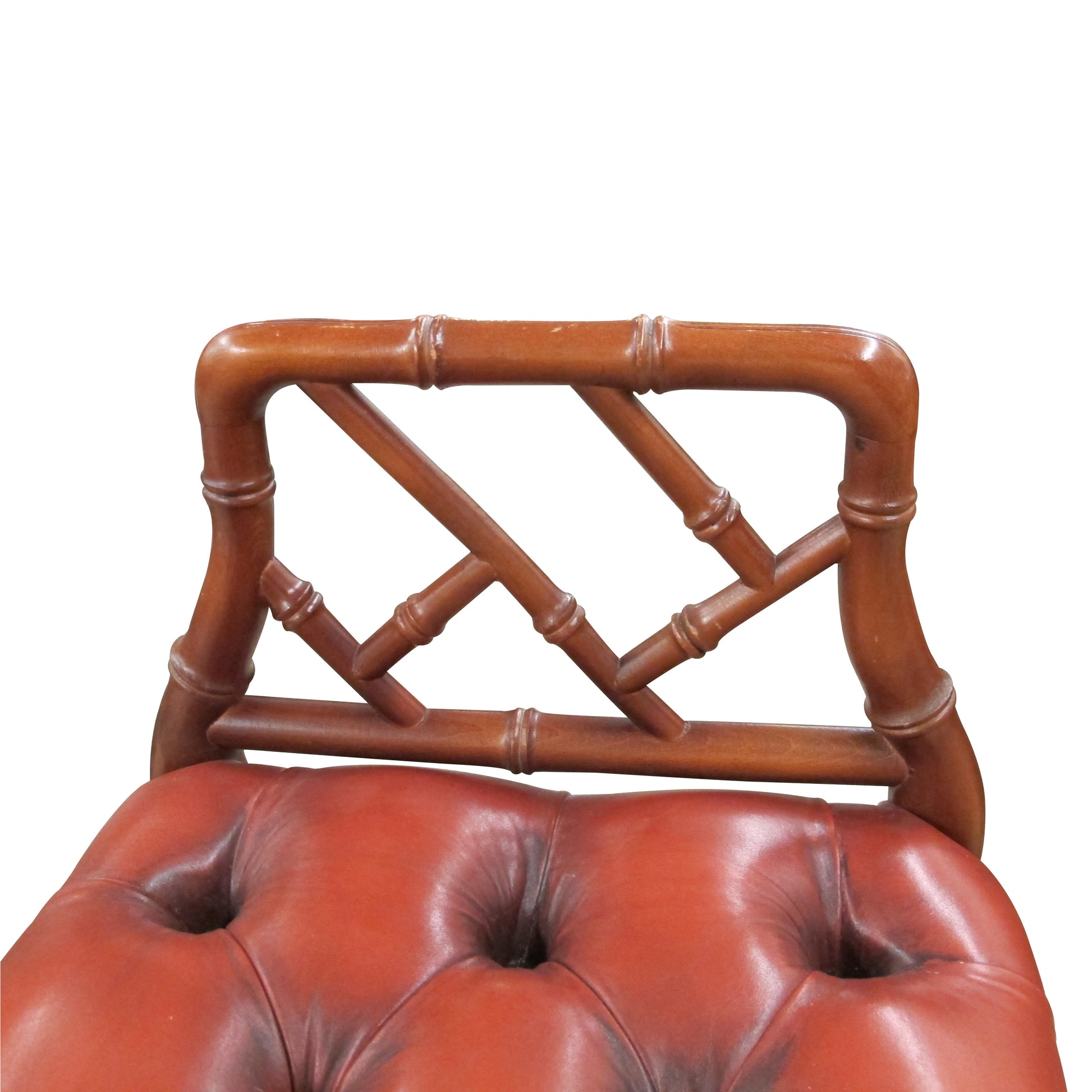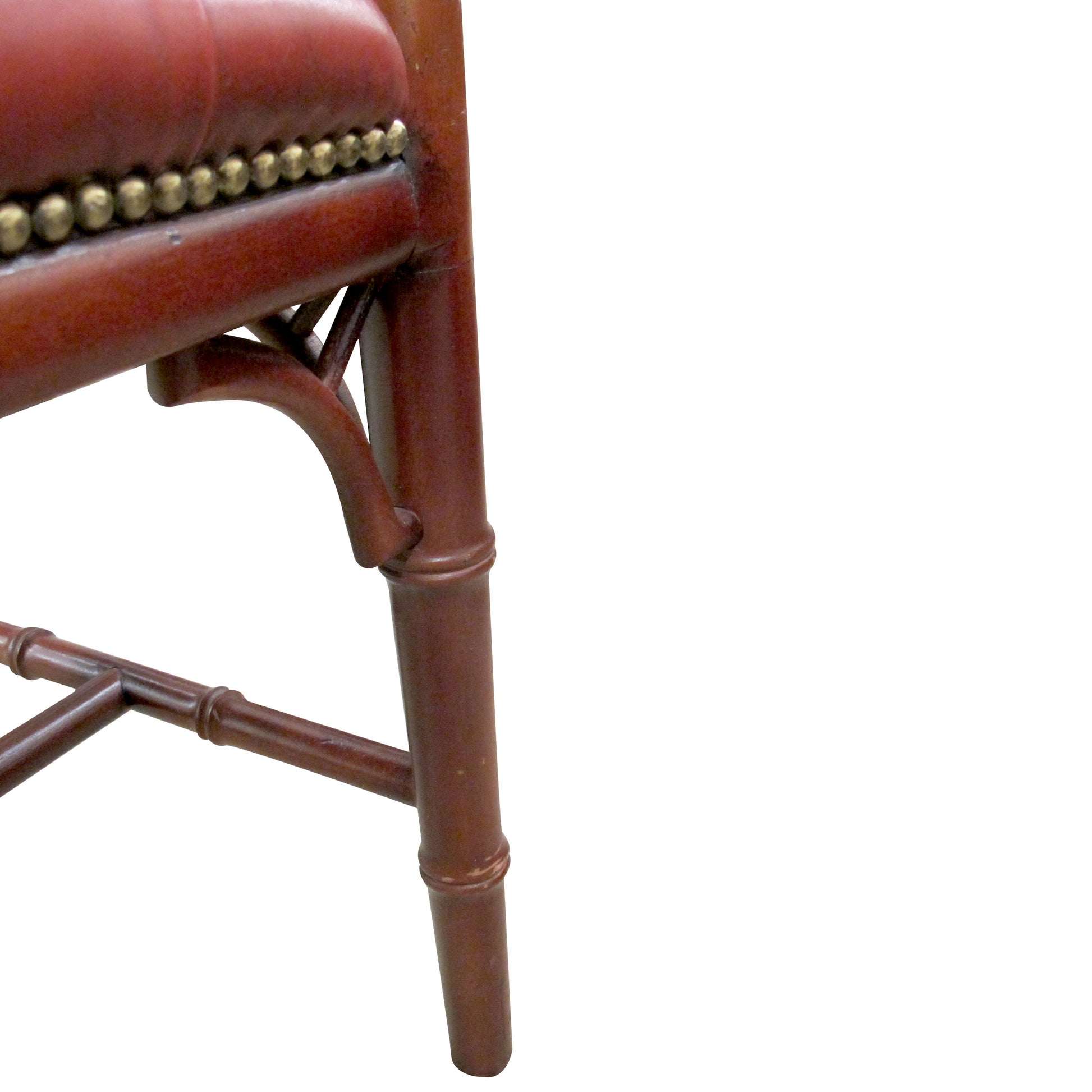 1950s English Red Leather Bench with Faux Bamboo Frame