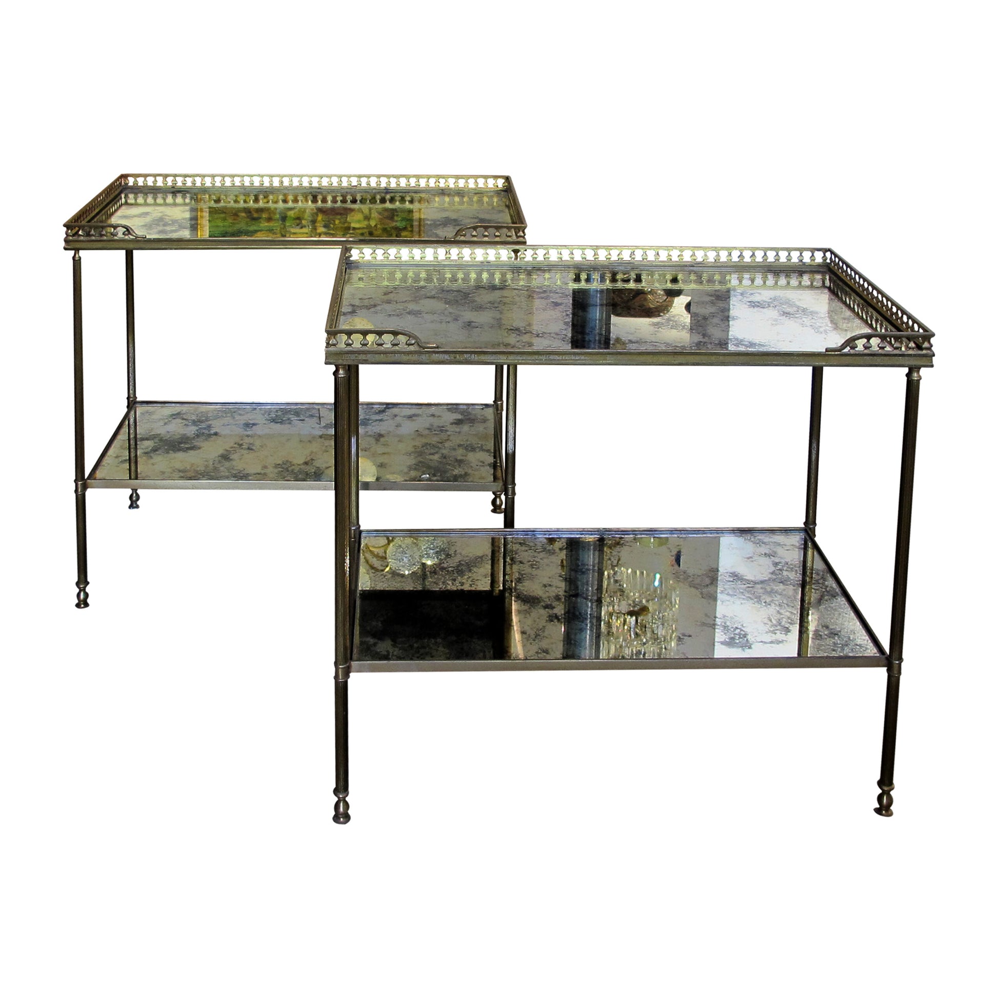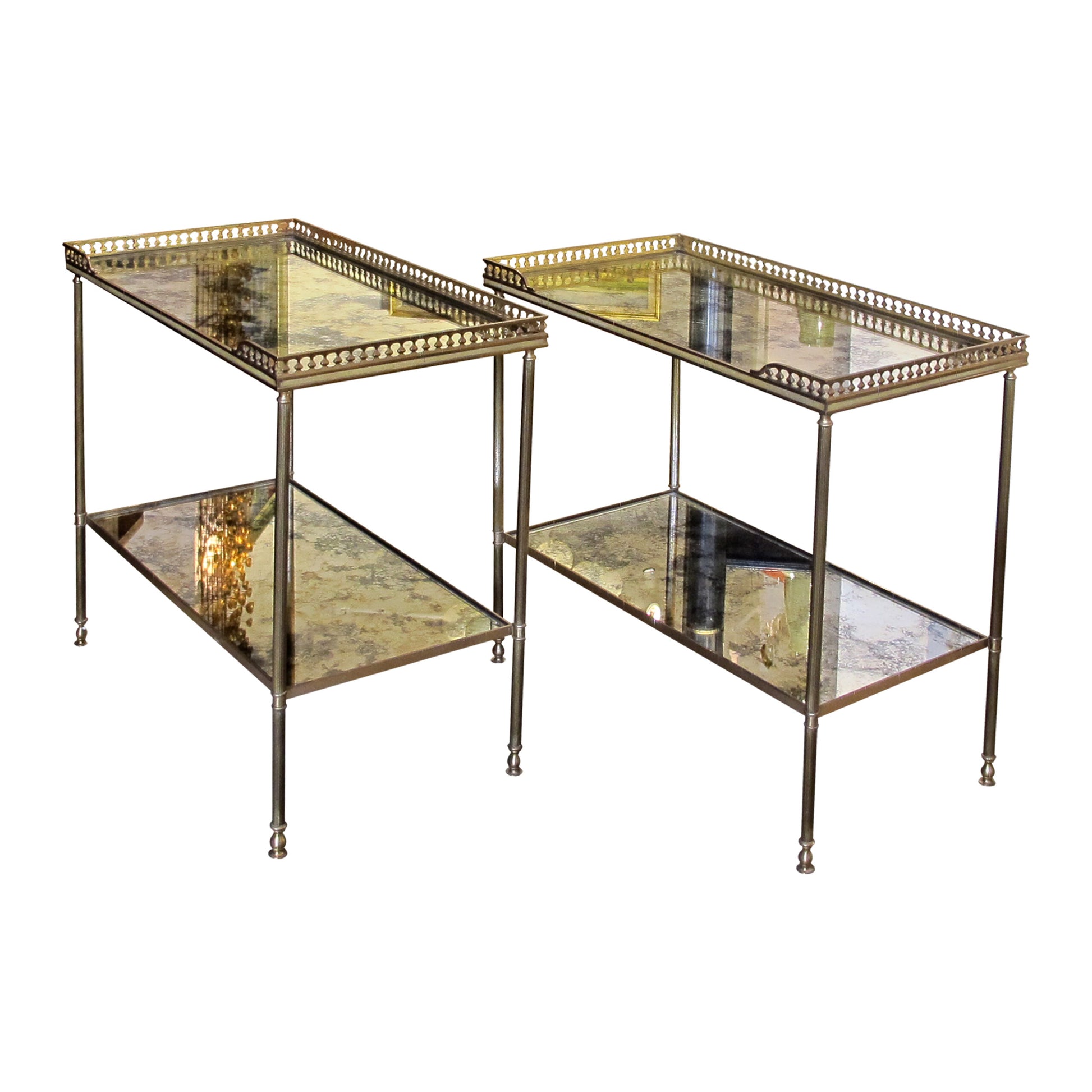 1950s Pair of Two-Tier Side tables with Antiqued Mirror by Maison Bagues, French
