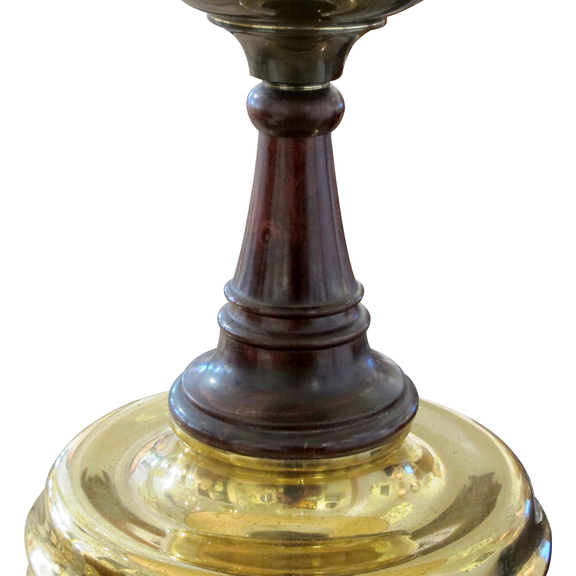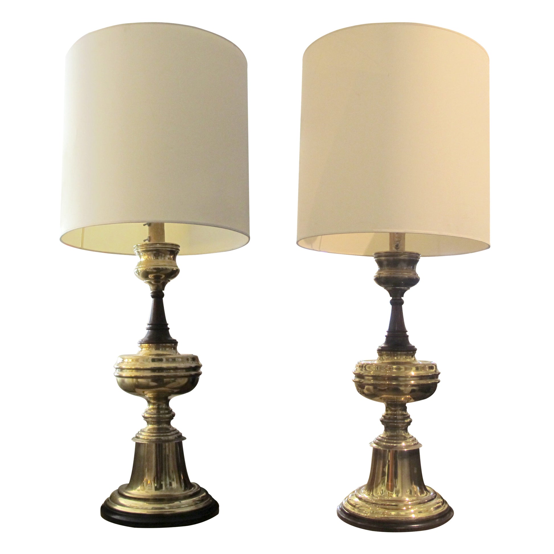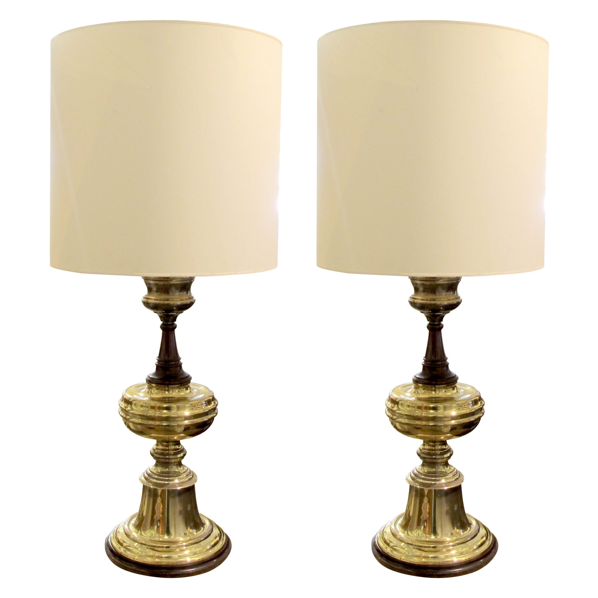 1950s Very Large Pair of Brass and Mahogany Tables lamps, English
