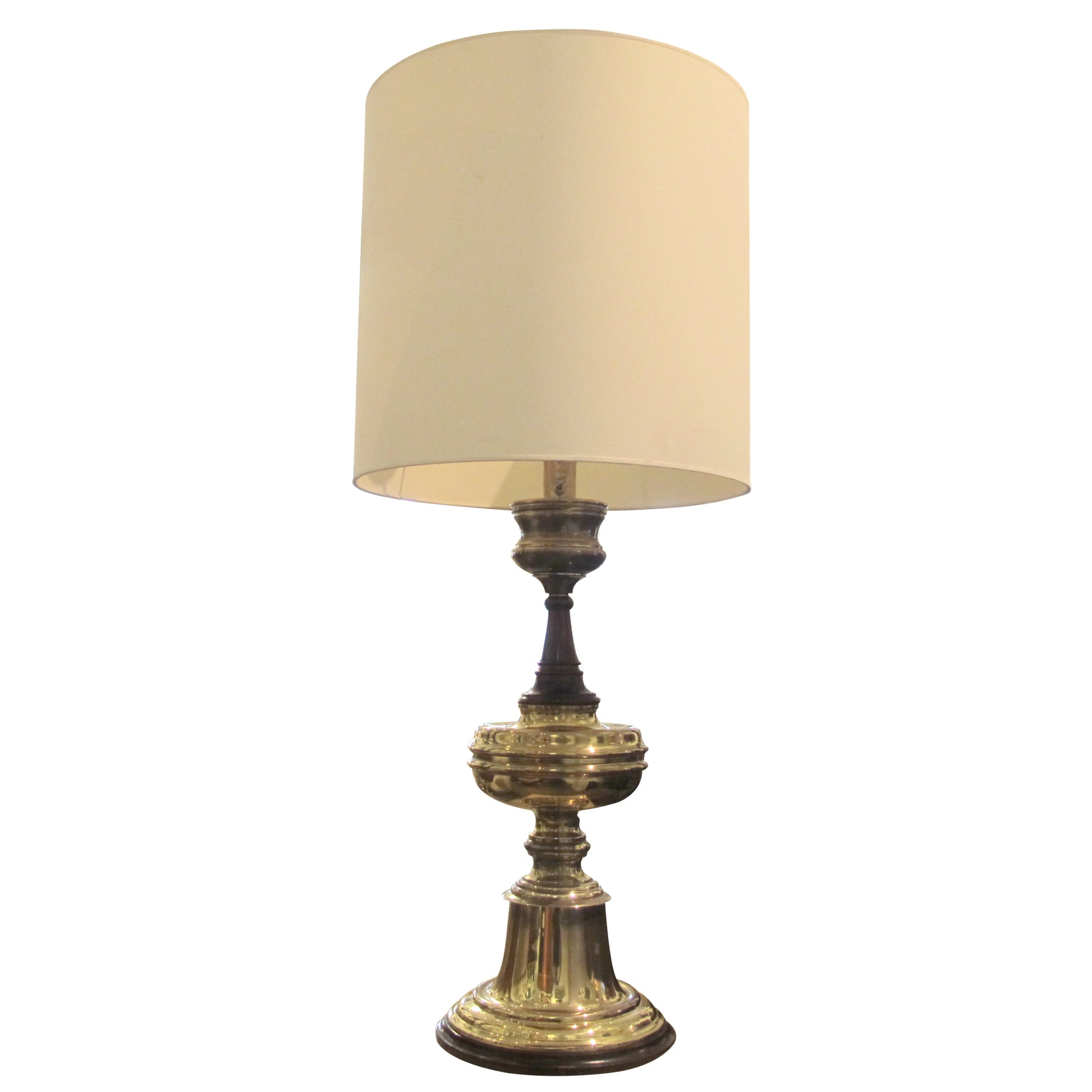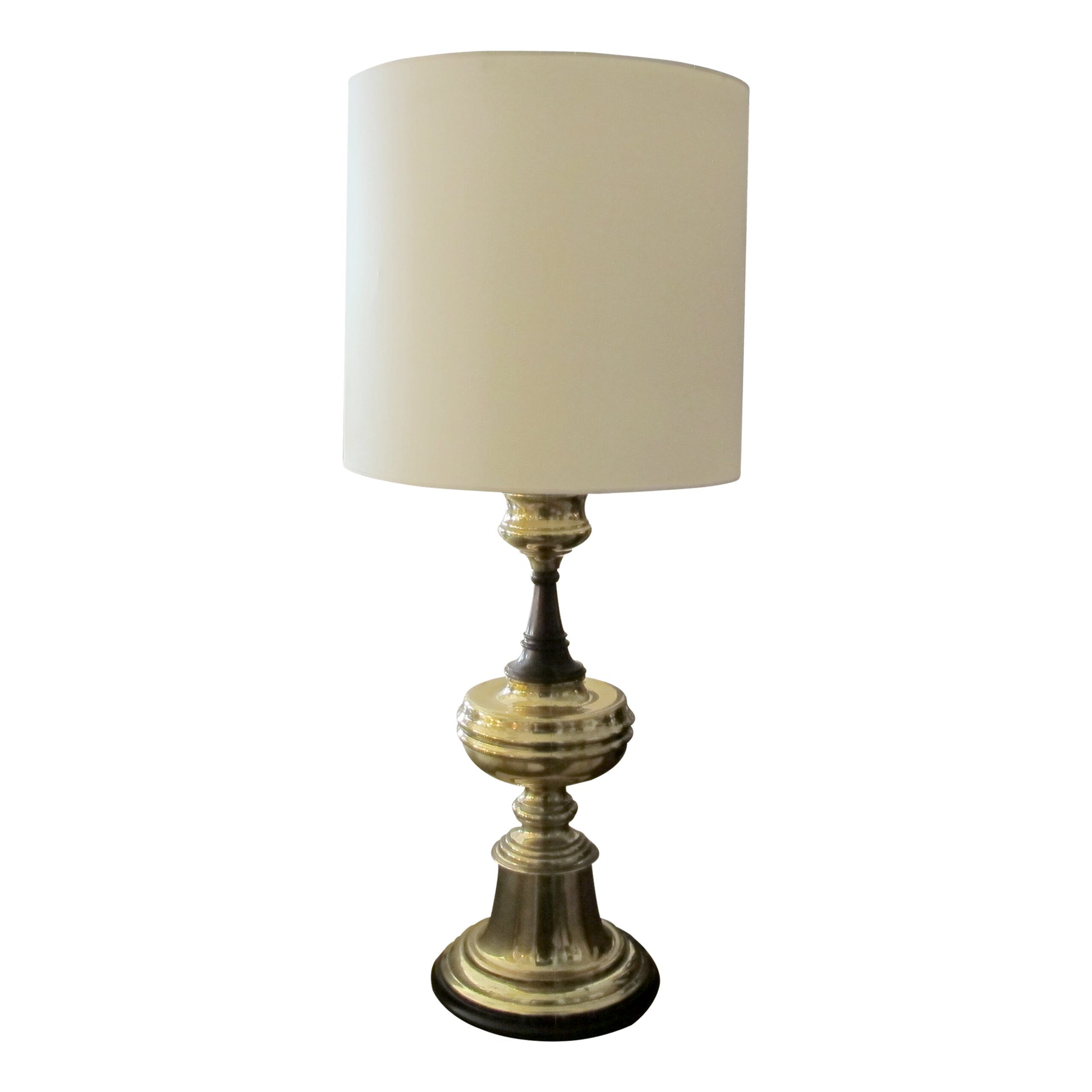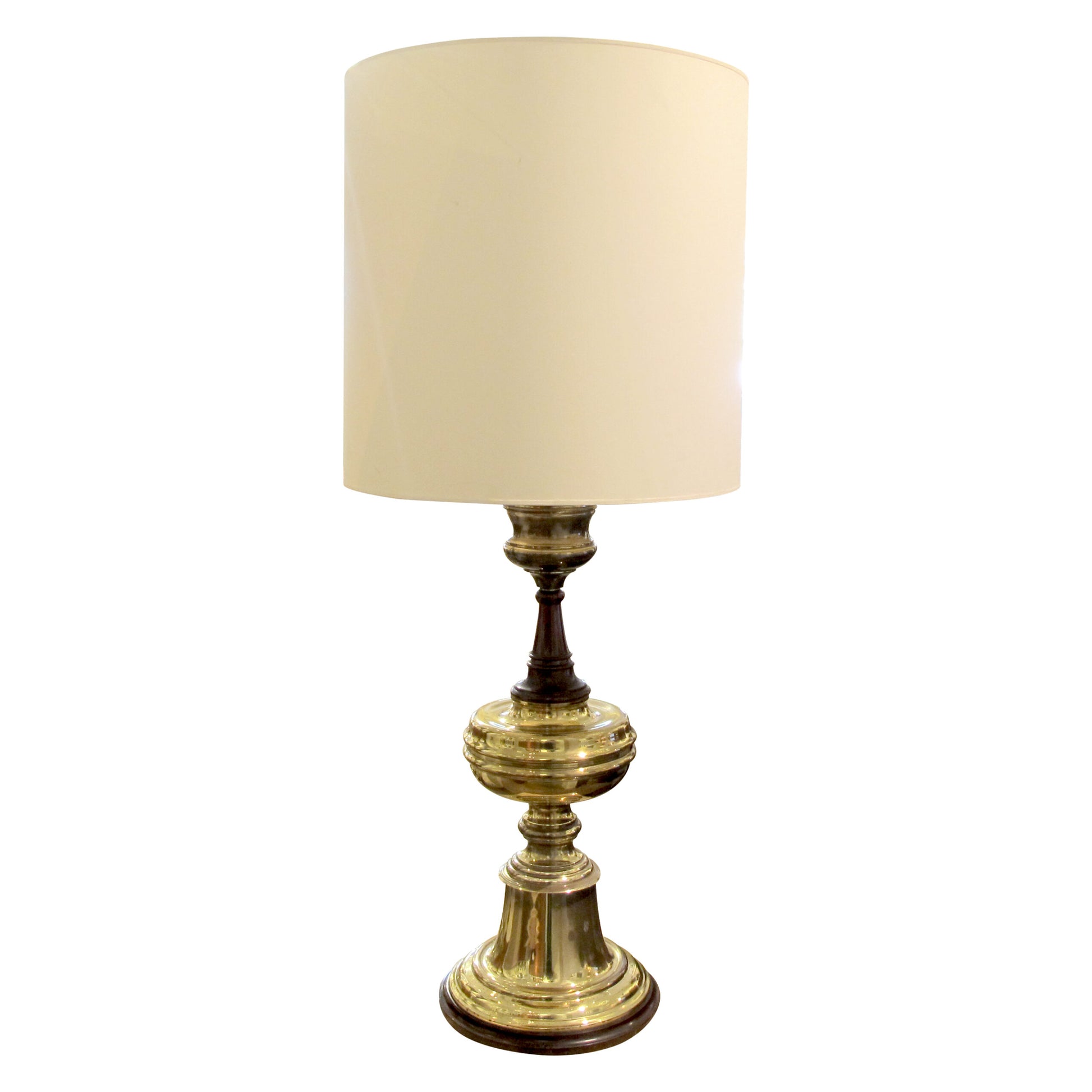 1950s Very Large Pair of Brass and Mahogany Tables lamps, English