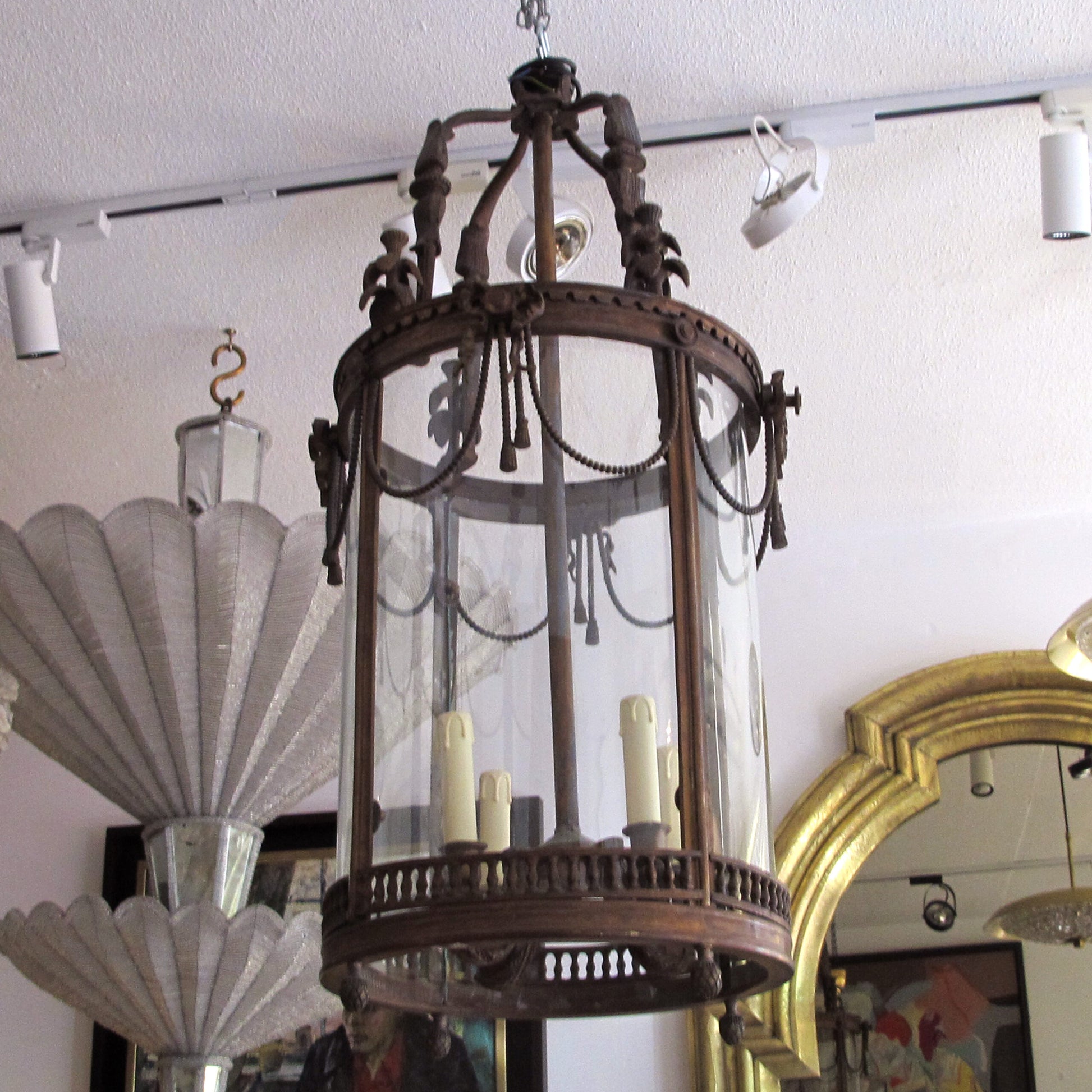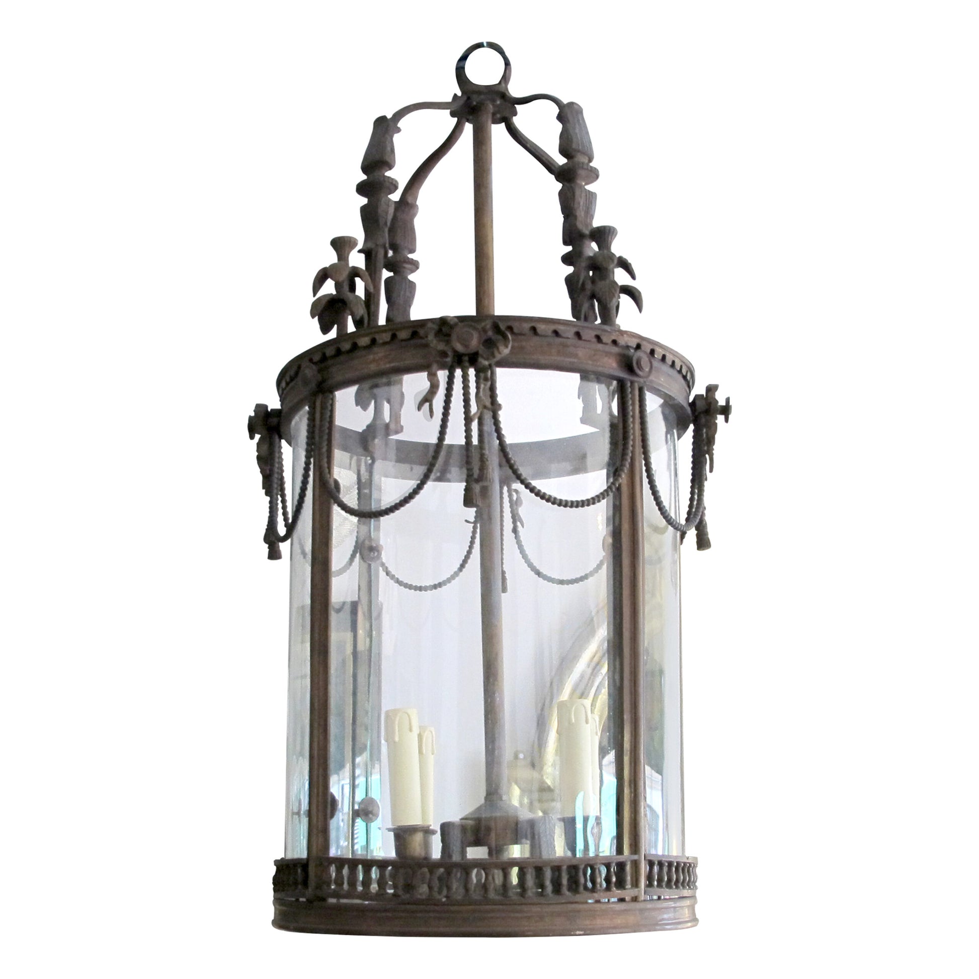 1960s French Louis XVI Style Bronze Lantern with Curved Glass