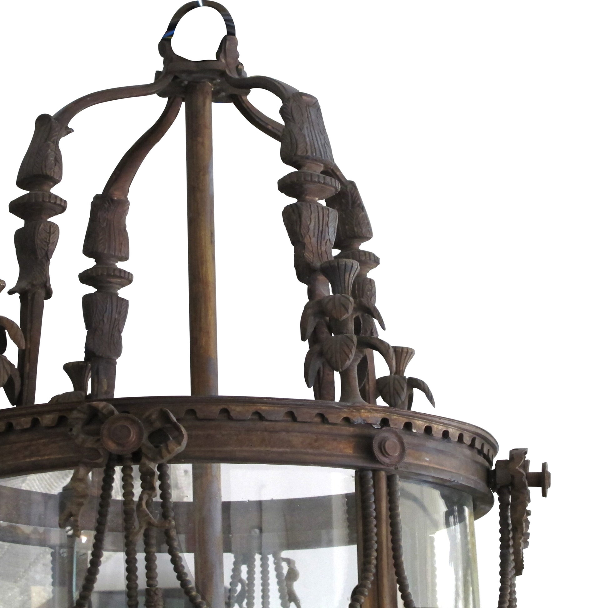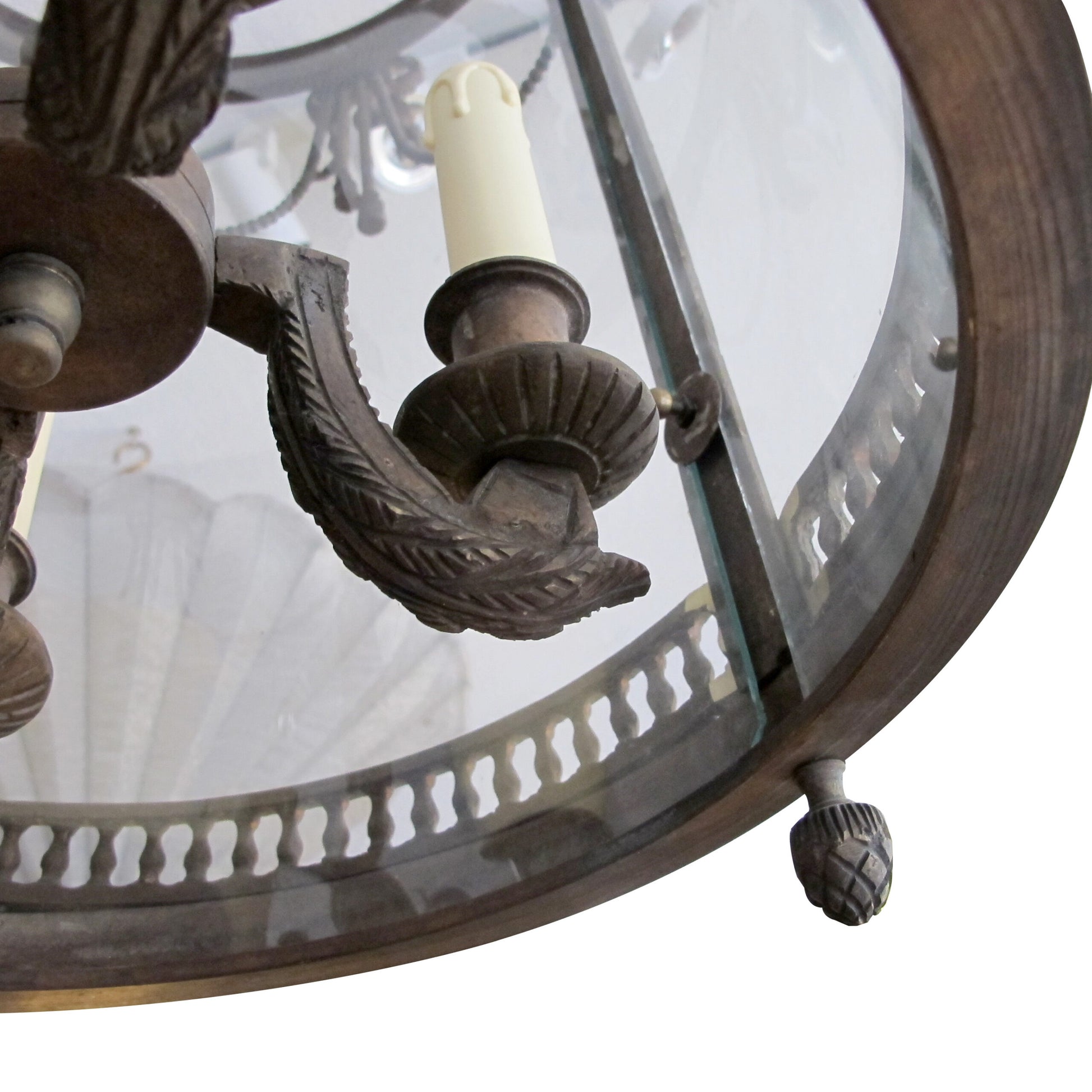 The lantern holds its original one-piece curved glass.