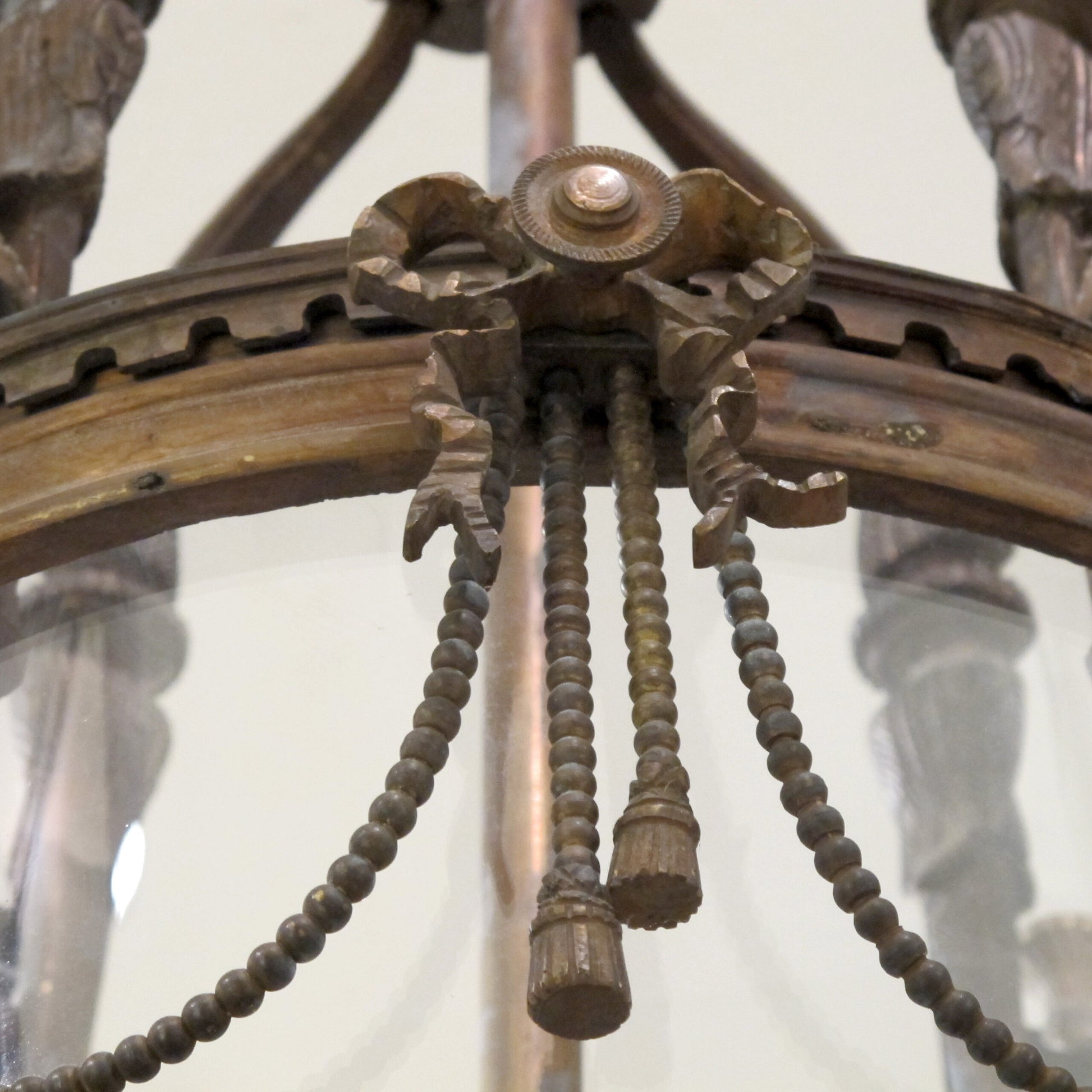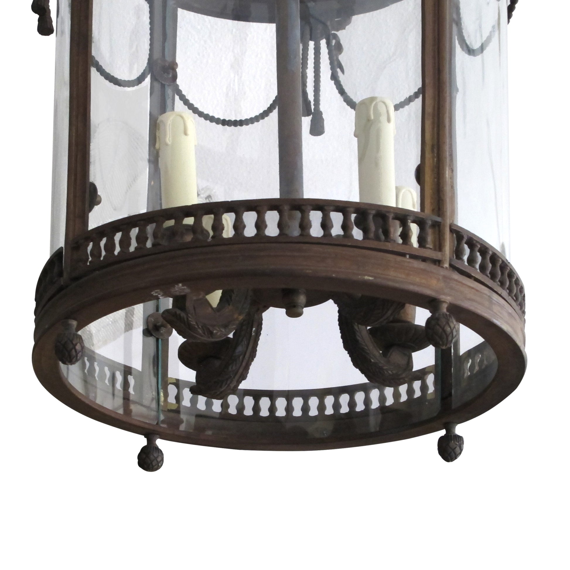 This very elegant 4-branch French lantern is from the 1960s in the style of Louis XVI and is crafted from bronze and features graceful and delicate ornaments such as garlands, ribbons, and swags.