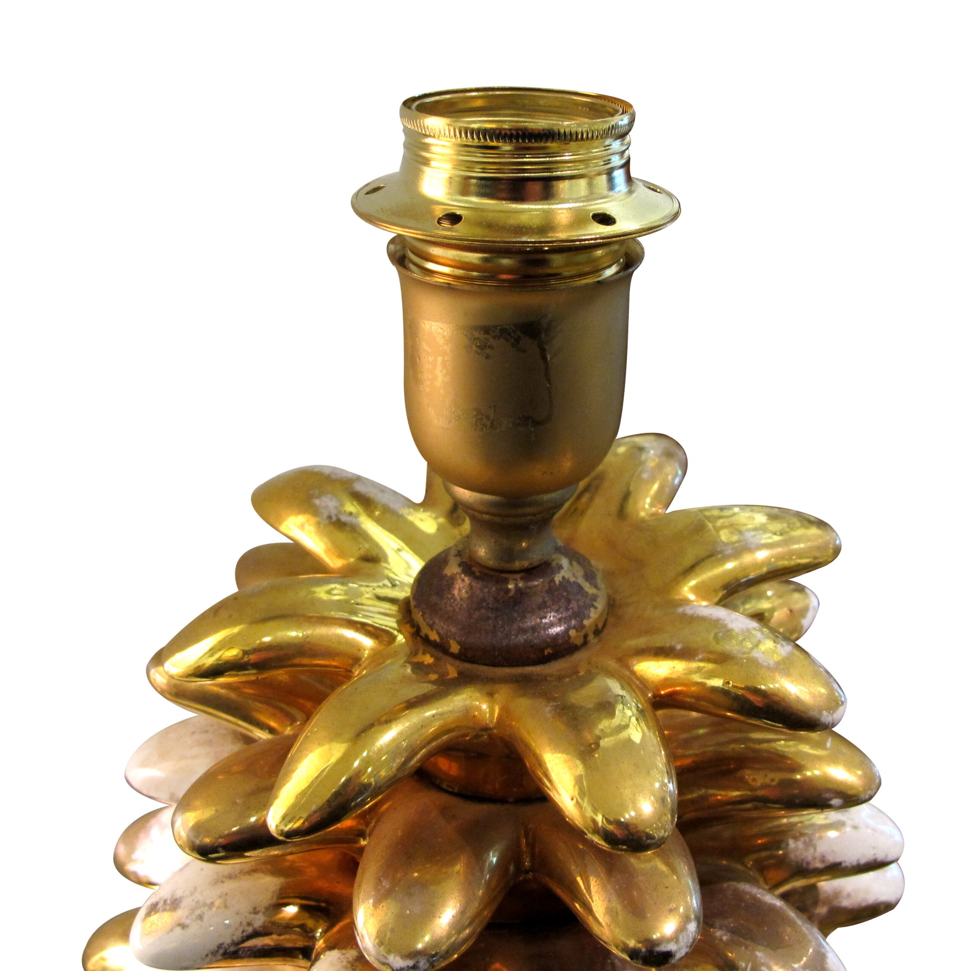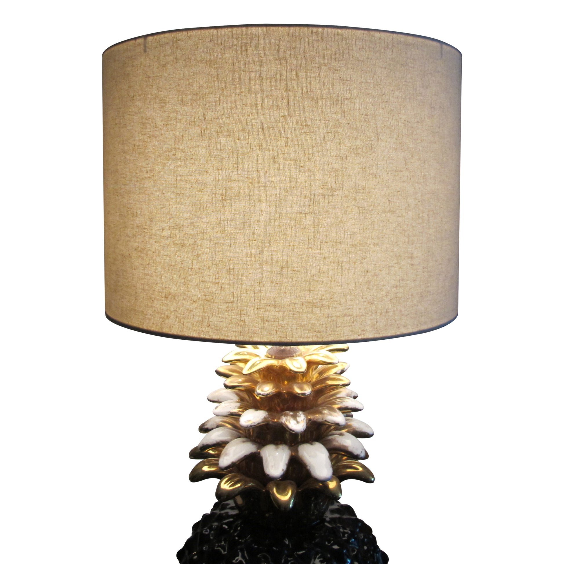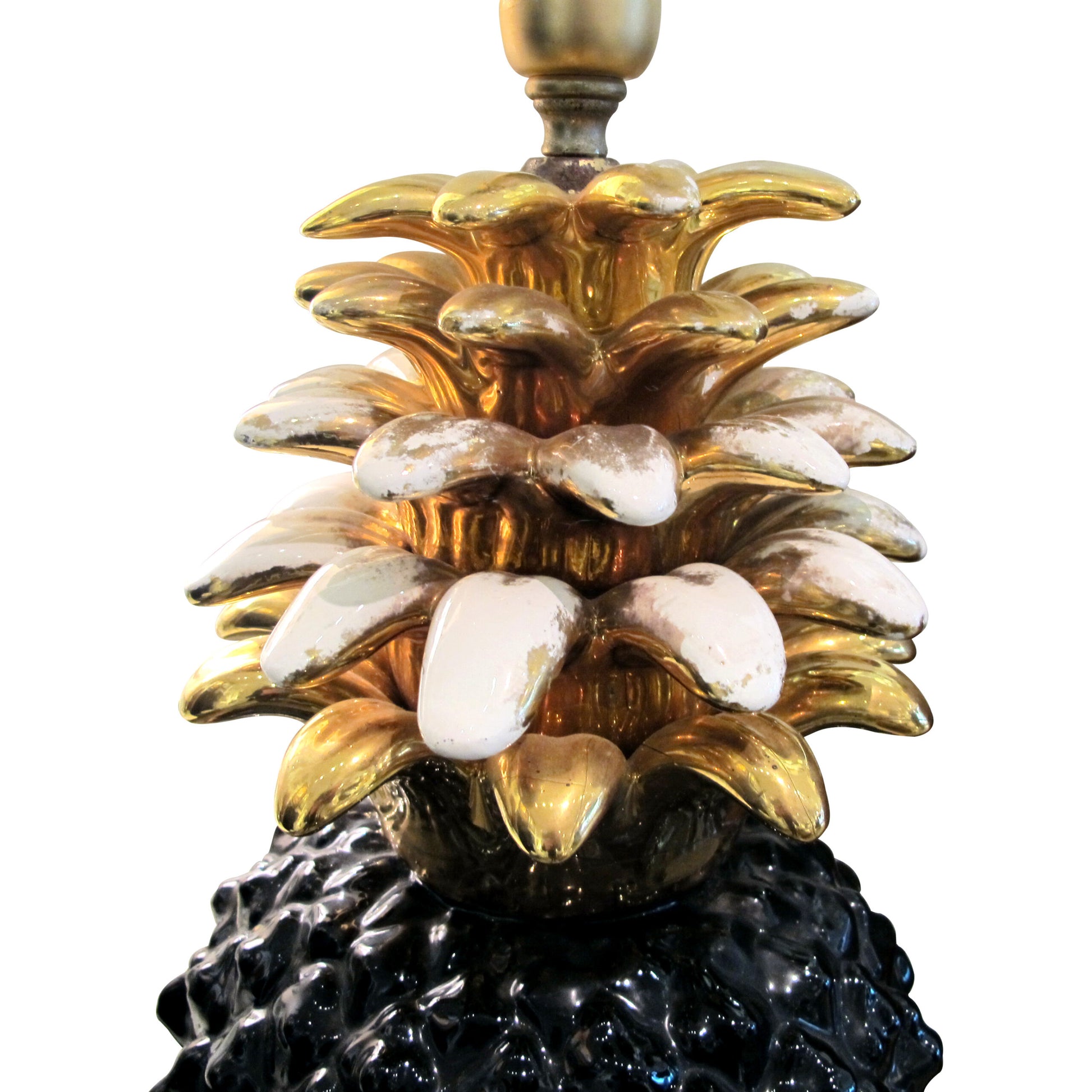 1970s Large Ceramic Black and Gold Pineapple French Lamp, Maison Lancel