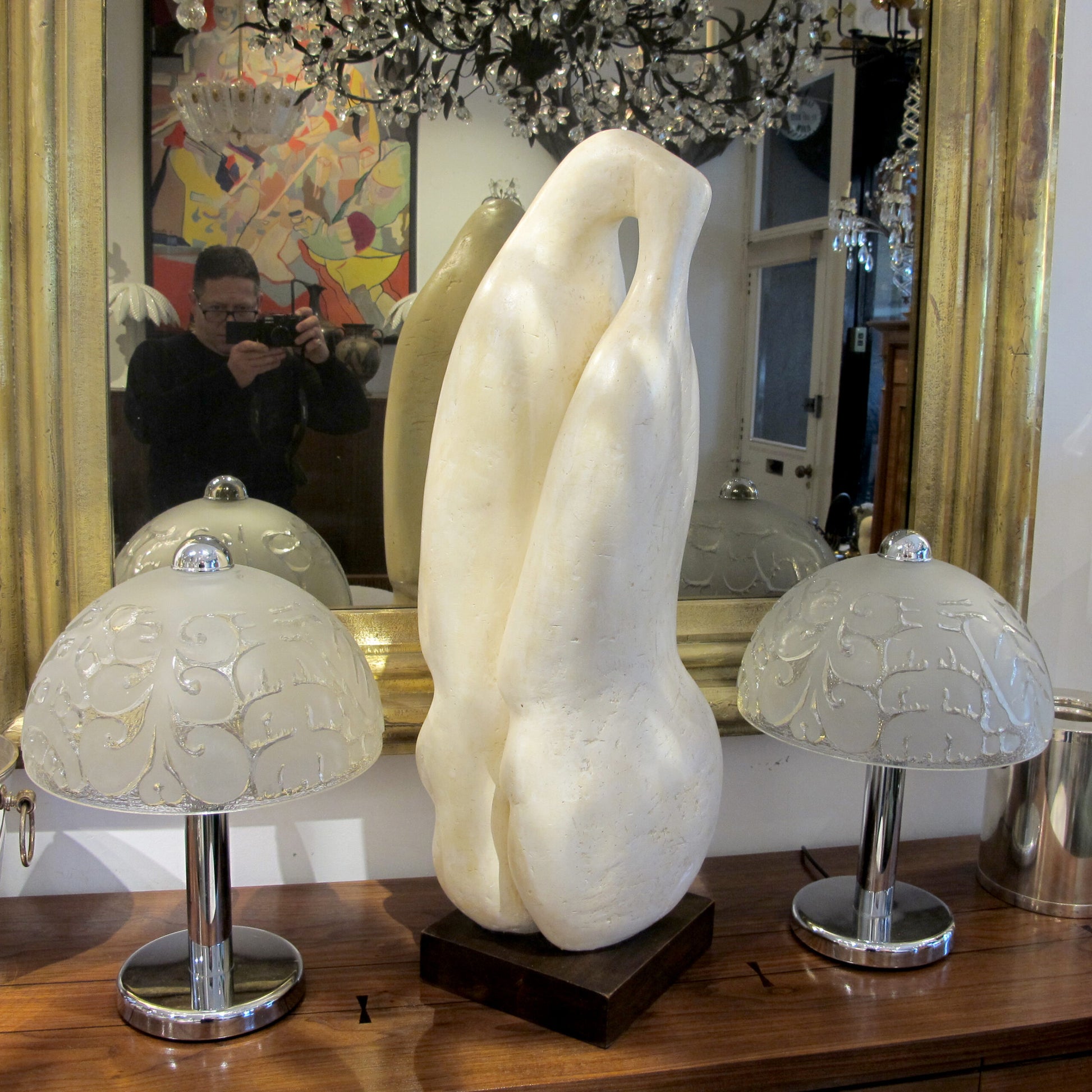 1970s Large Pair of Chrome and Frosted Glass Table Lamps, German
