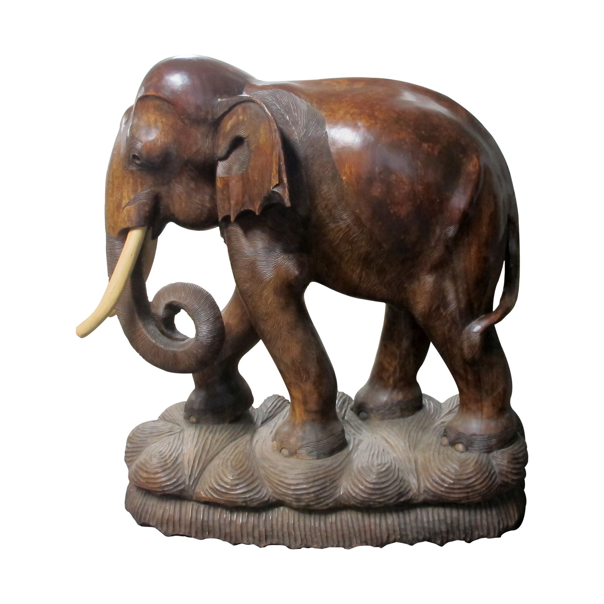 A pair of carved wood elephants sculptures, 20th century