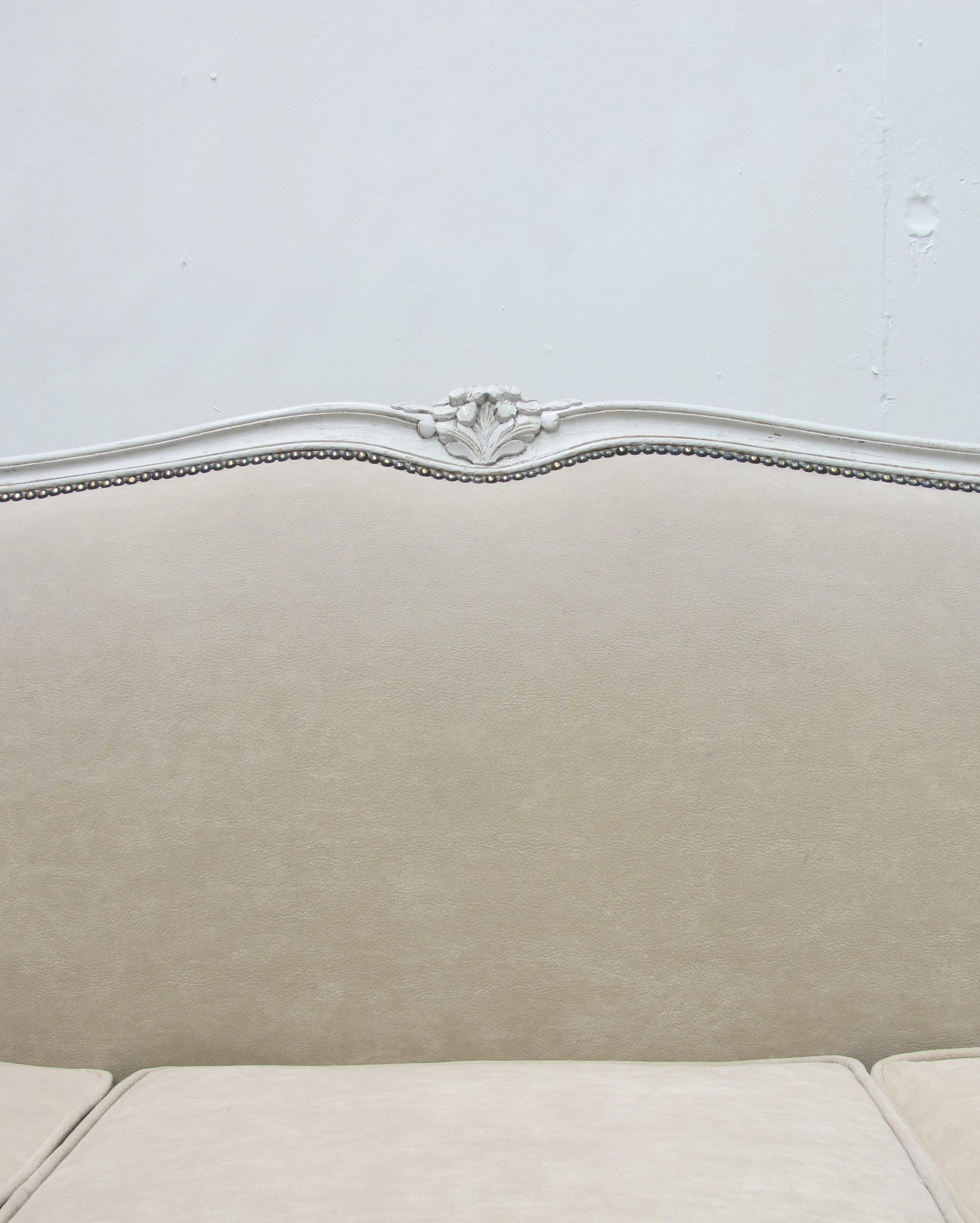 This a very well made French three-seater sofa with 3 seat cushions, circa 1900’s, newly upholstered with a suede like linen colour fabric,