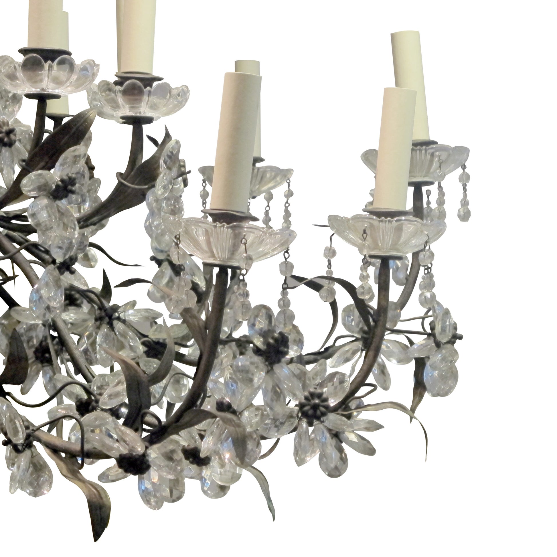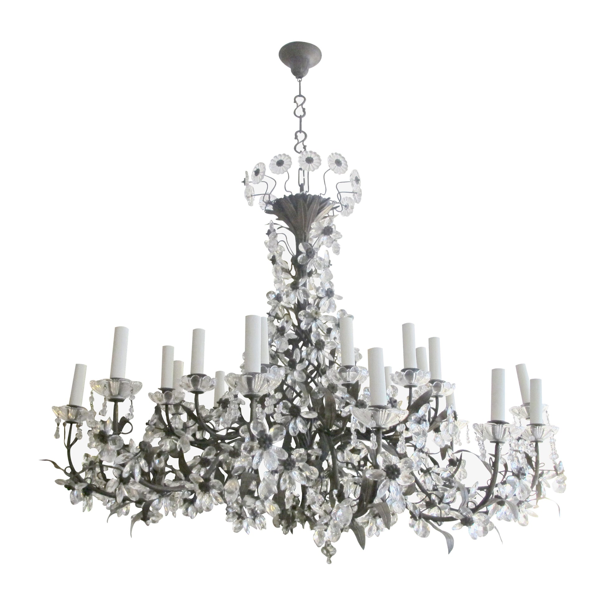 French 1940s Large 24 Branch Leafy Chandelier with Crystal flowers