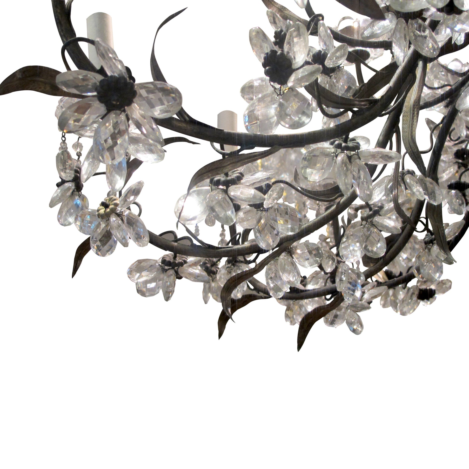 This is a magnificent large leafy chandelier meticulously crafted with a profusion of crystal flowers on a brass and toleware frame.