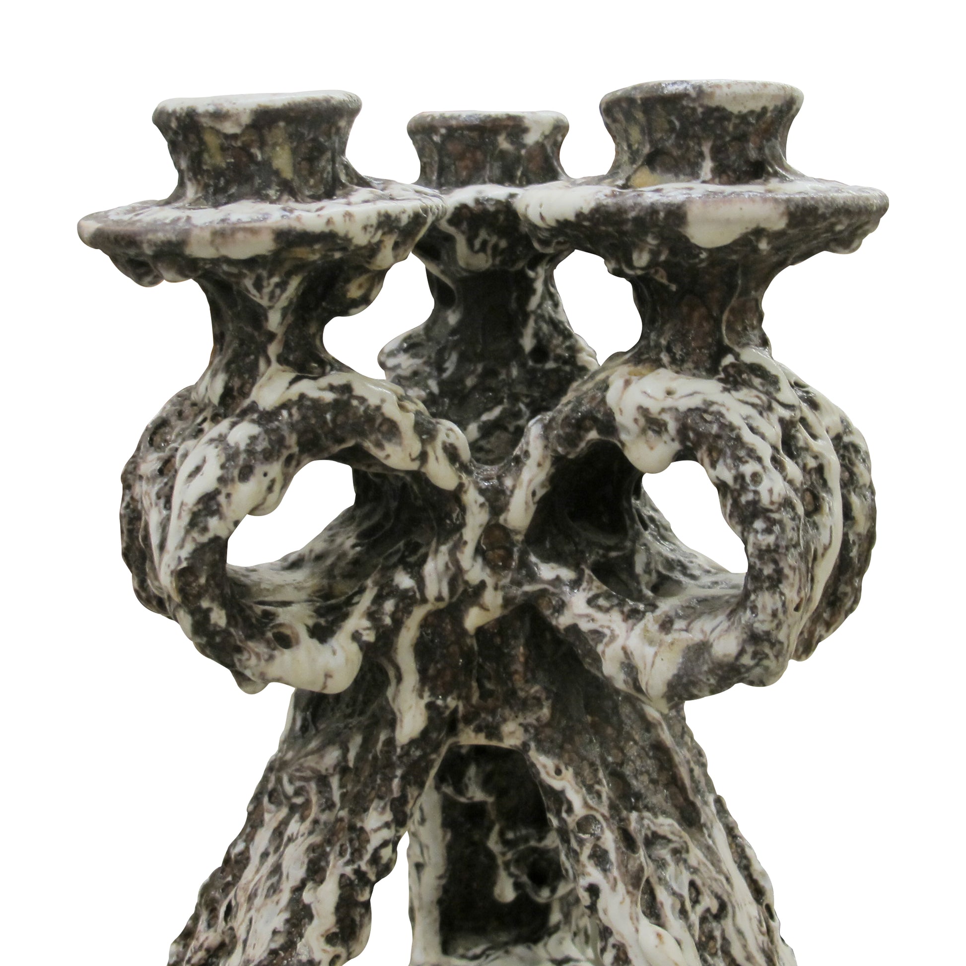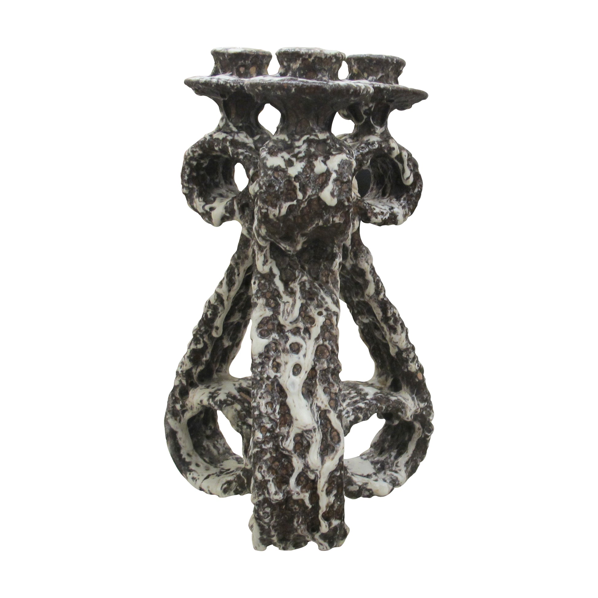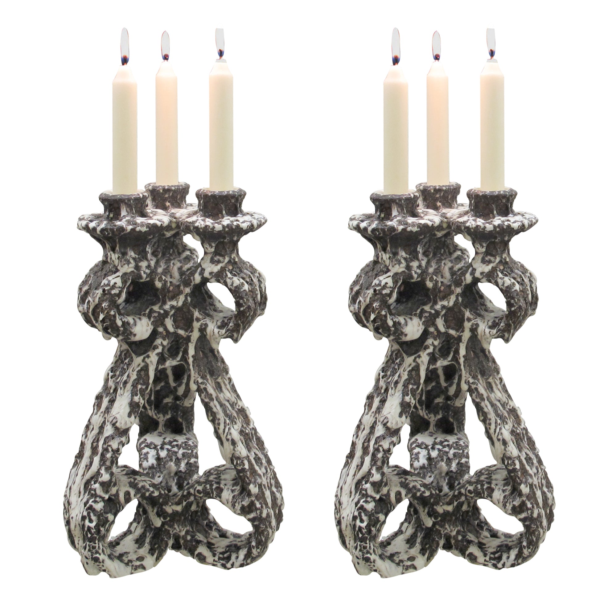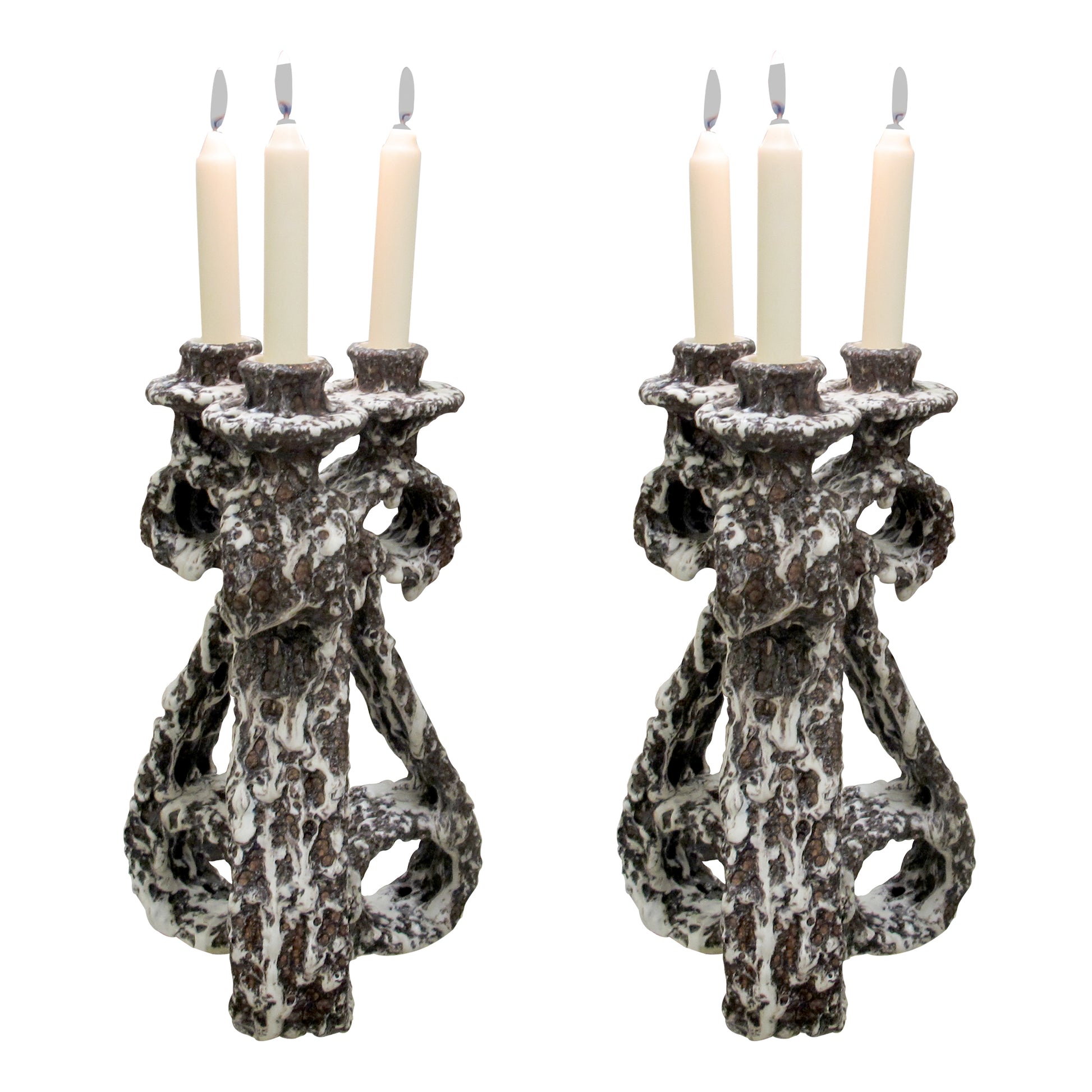 Pair of 1950s Fat Lava Candlesticks by Marius Giuge from Vallauris, French
