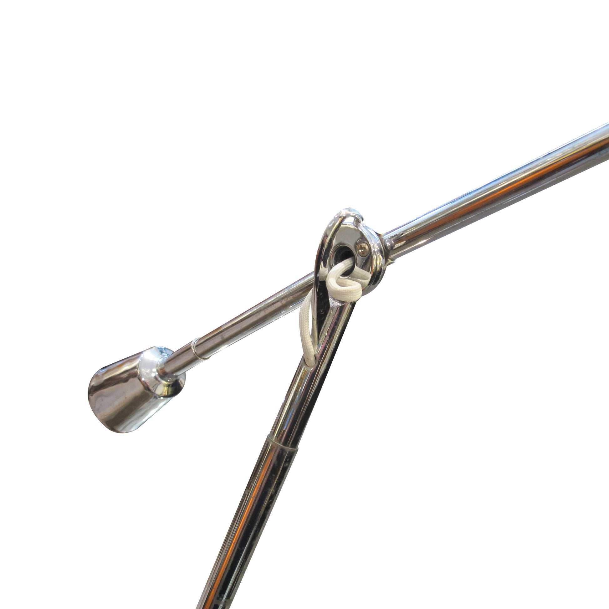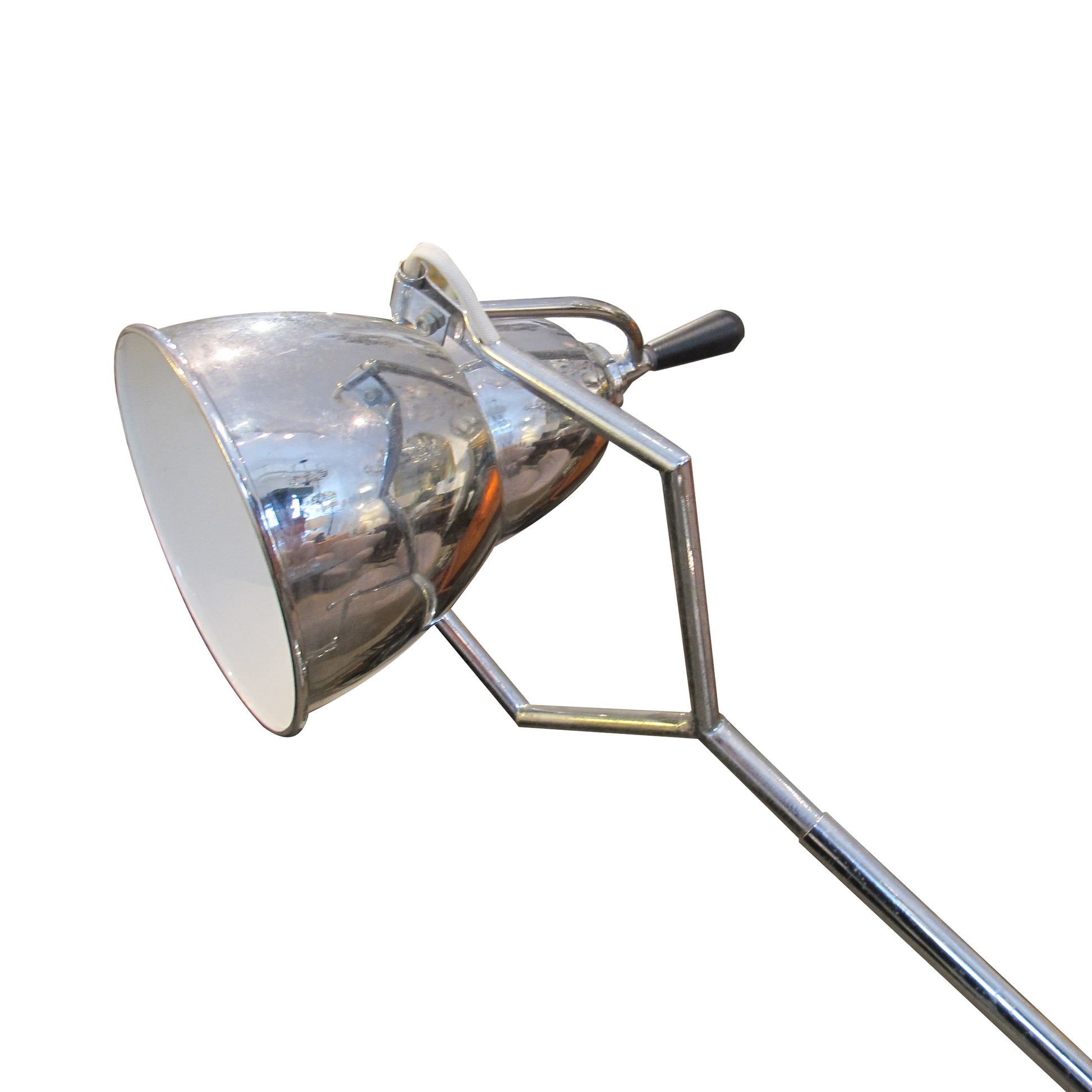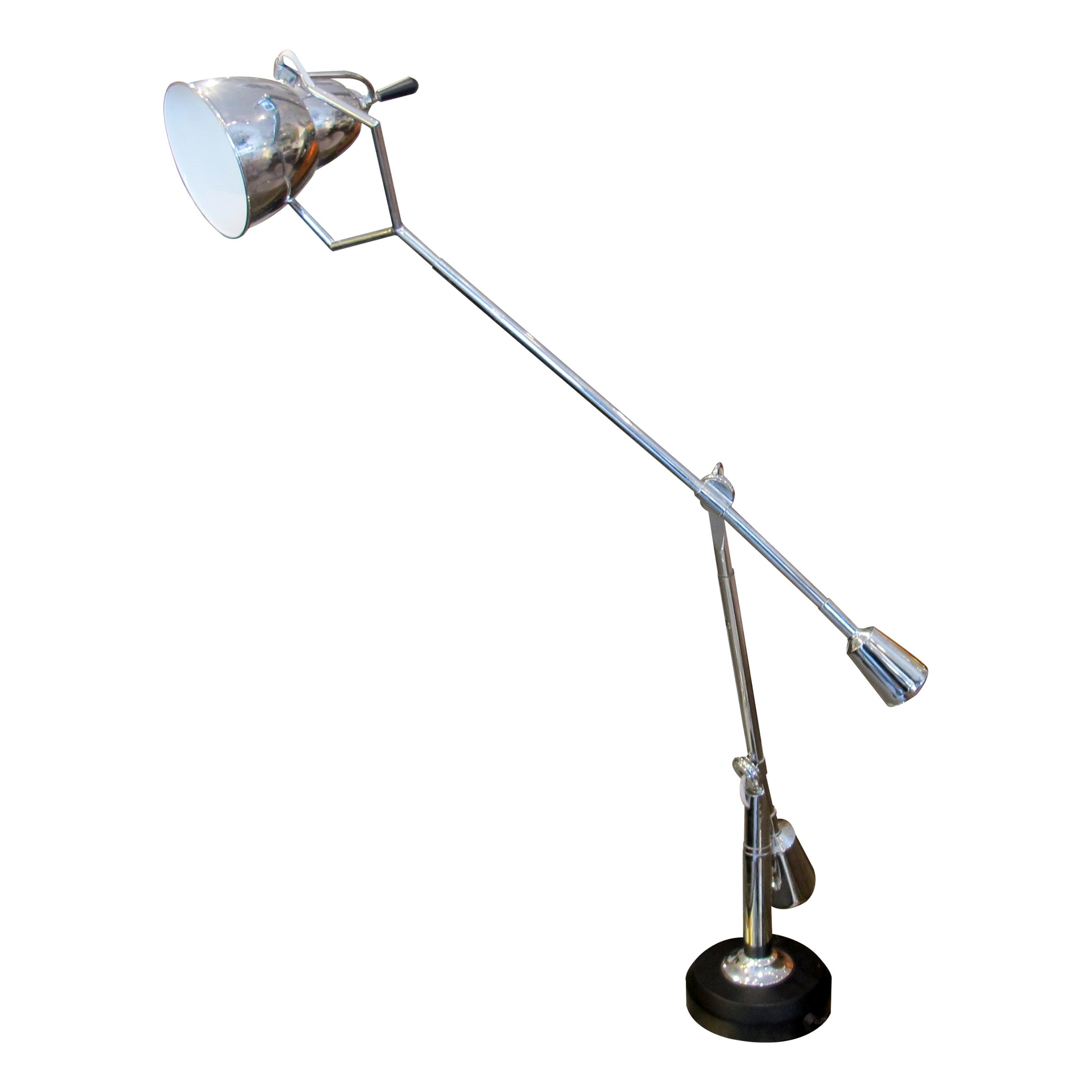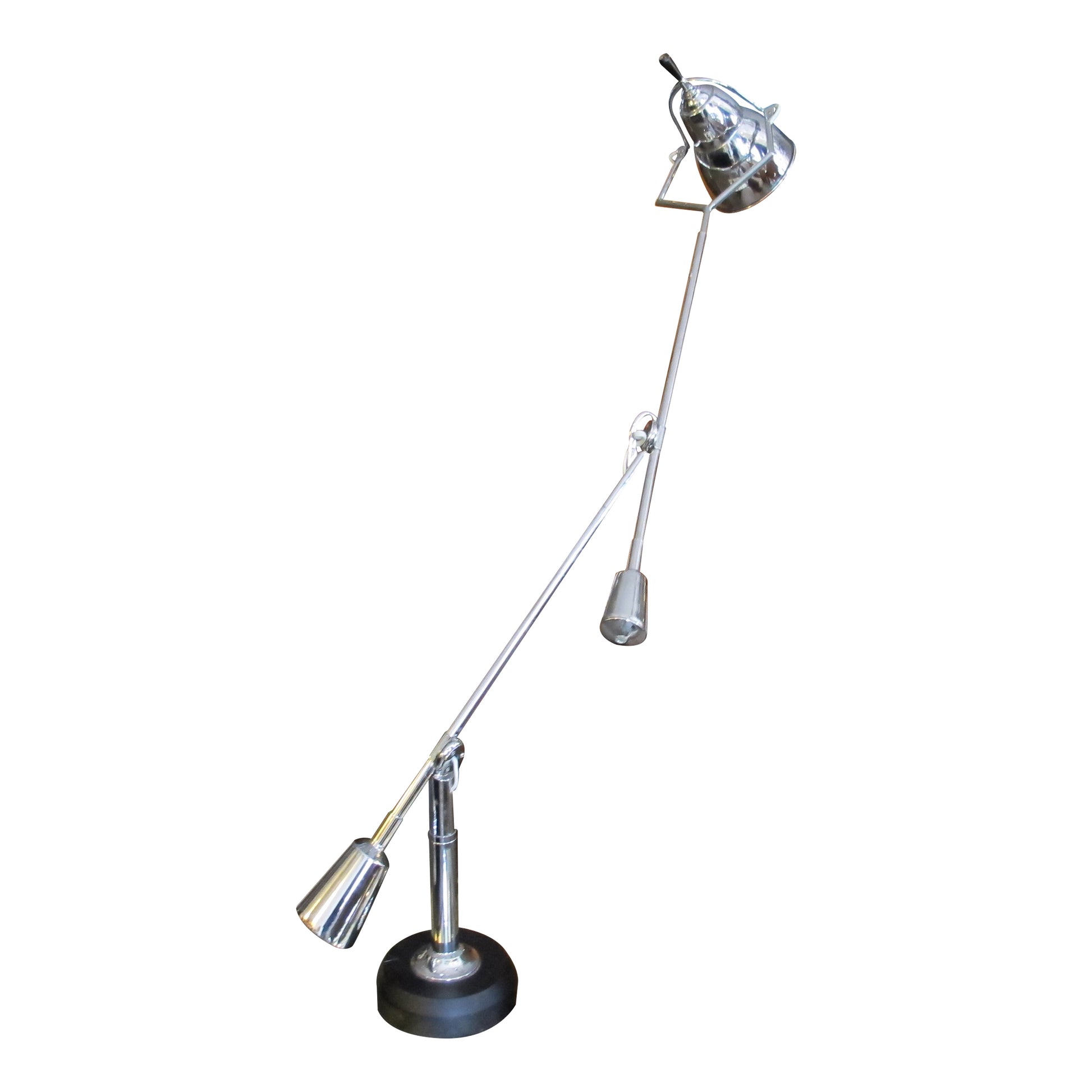 Inspired by the iconic designs of Édouard-Wilfred Buquet, this striking pair of Italian desk lamps is a faithful re-edition from the late 1970s. Featuring a sculptural double-arm configuration, each lamp is finely crafted in chrome-finished metal and features fully adjustable arms that pivot with remarkable precision. The counterweight balance system ensures optimal positioning and seamless movement, offering both functionality and elegance.