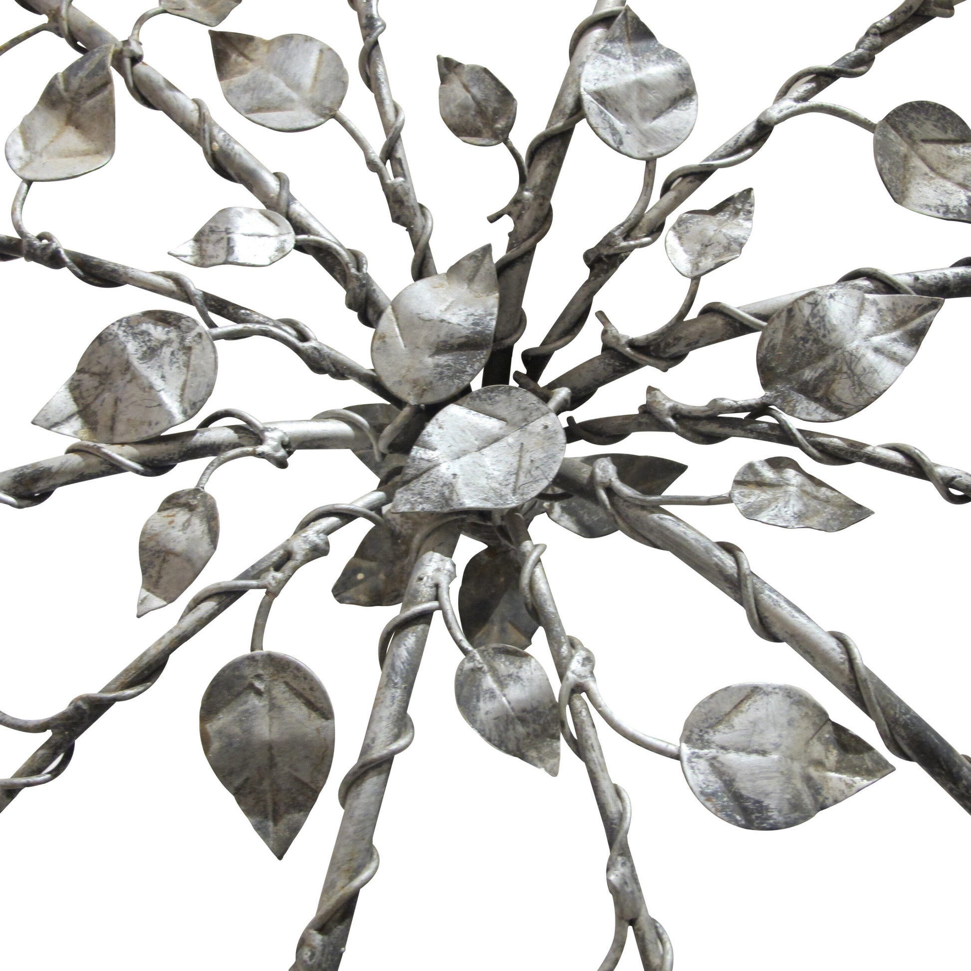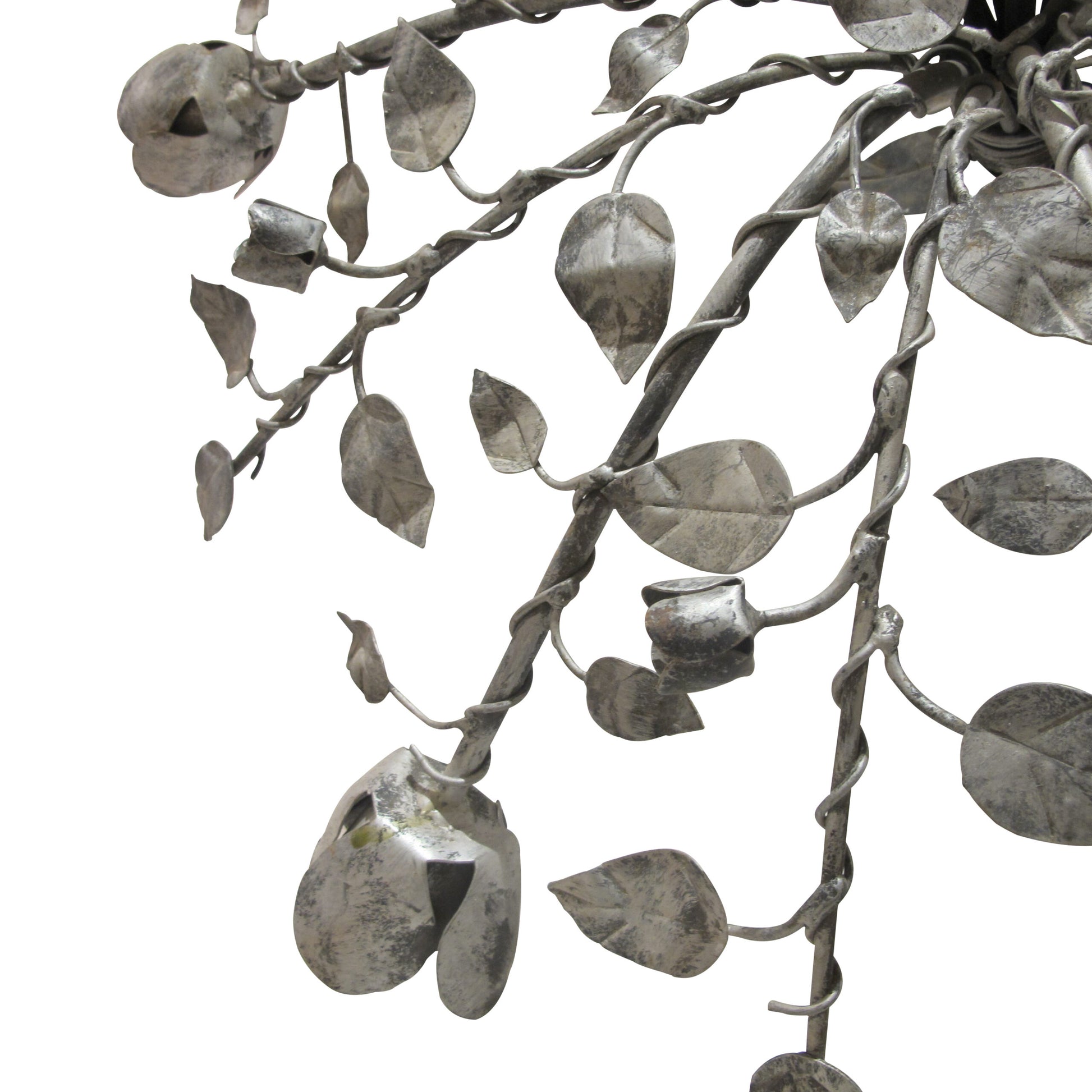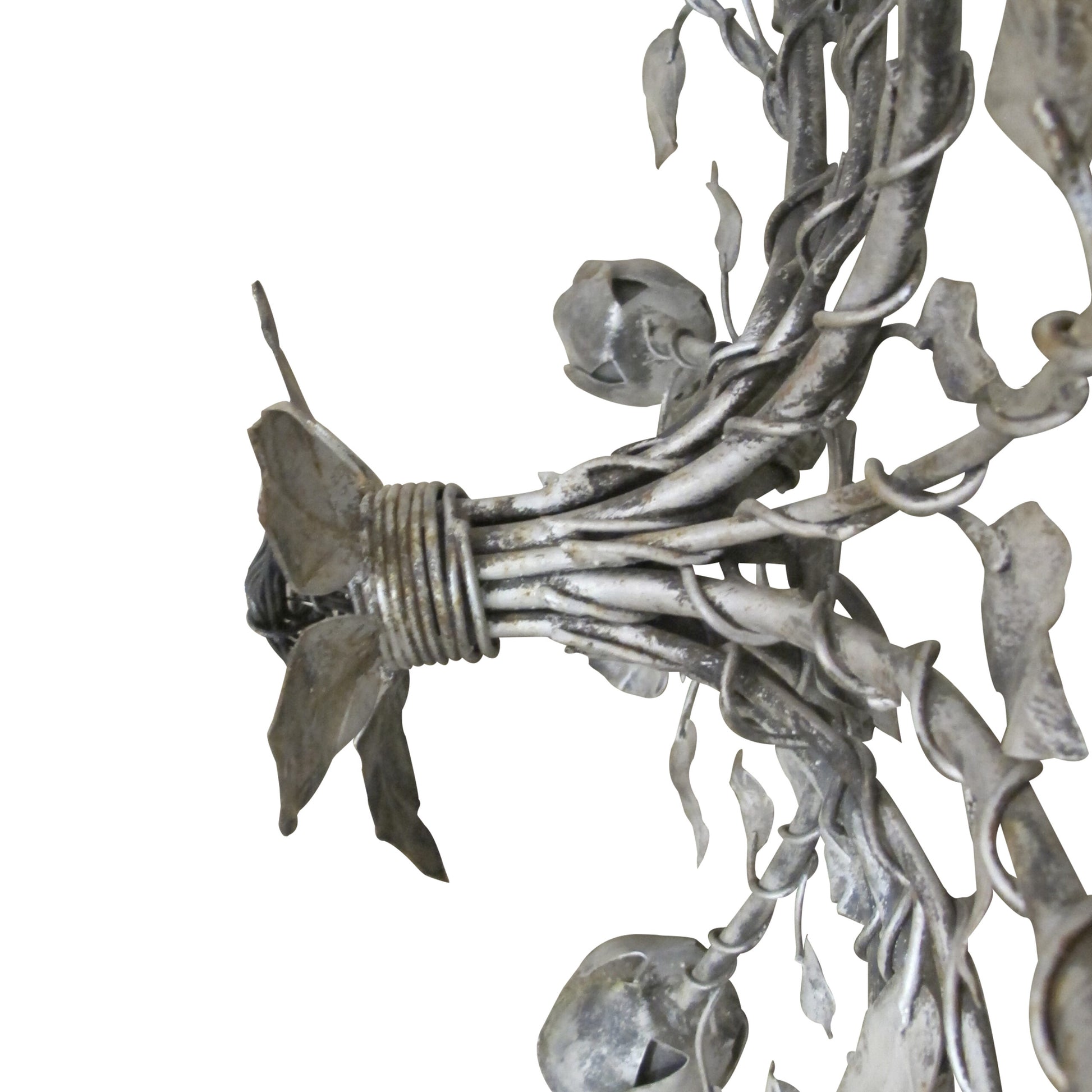 Pair of Large Silver-Painted Iron Floral Plafonniers / Wall Lights, Spanish 1950s