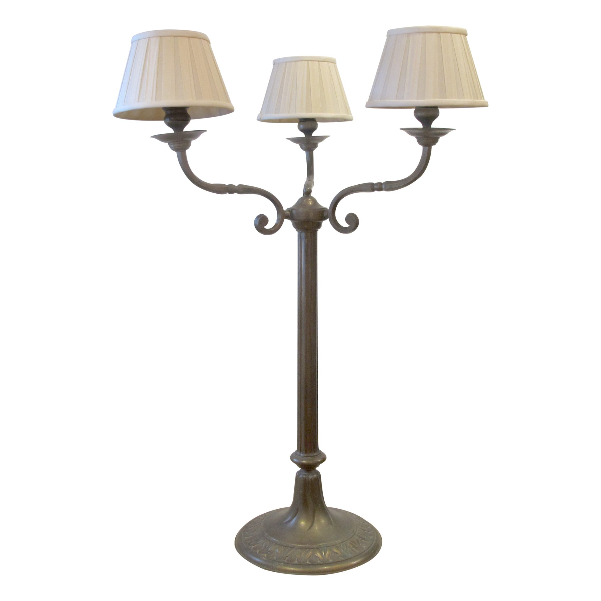 Pair of Large Three Arms Solid Bronze Table Lamps circa 1900, French