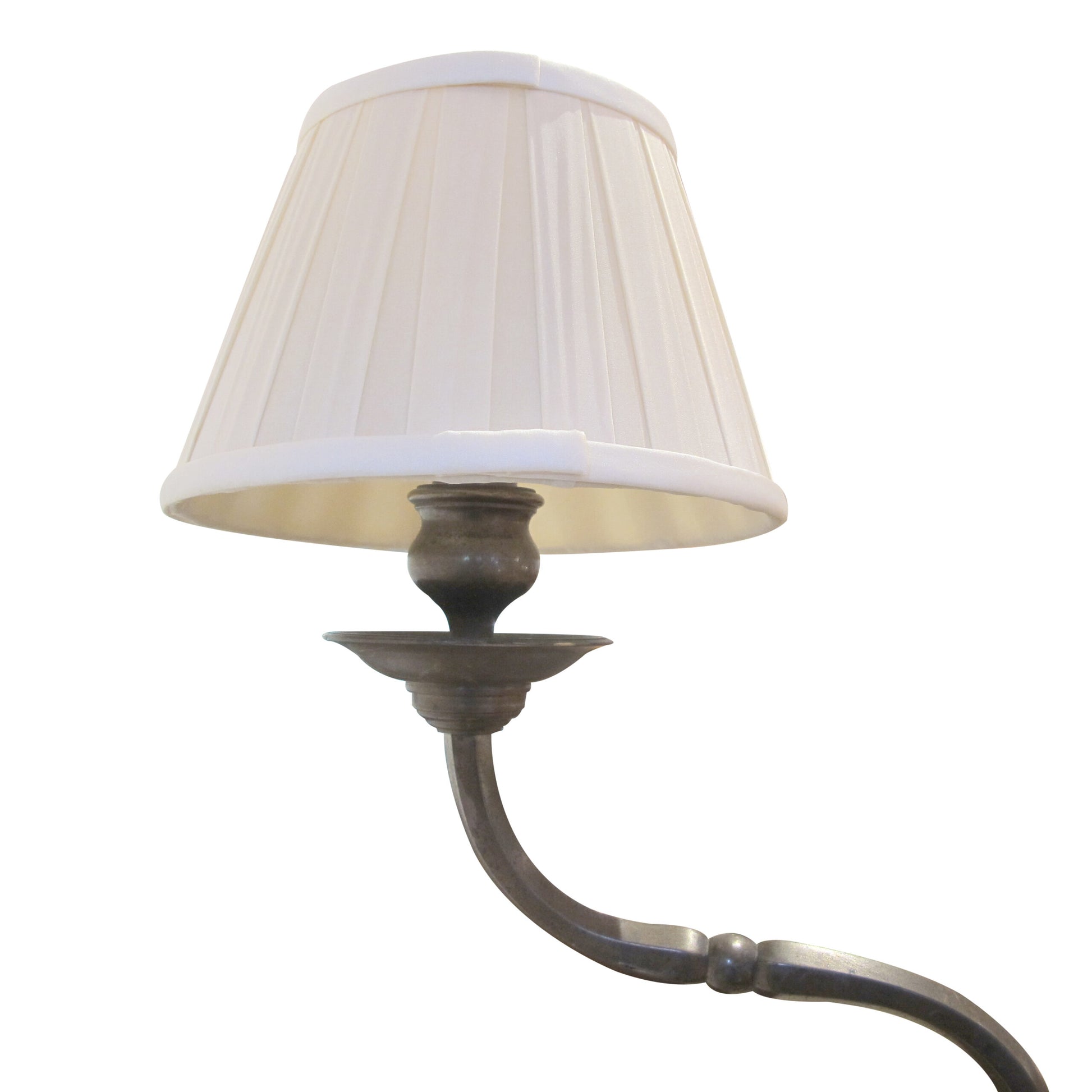 This stunning pair of large bronze table lamps, dating from around 1900, embodies the elegance of the early 20th century. Each lamp features a gracefully curved three-arm design, reminiscent of classic candelabras, supporting three lampshades with pleated fabric in a warm golden hue. The cast bronze base, adorned with decorative engravings, provides a sturdy and sophisticated foundation.