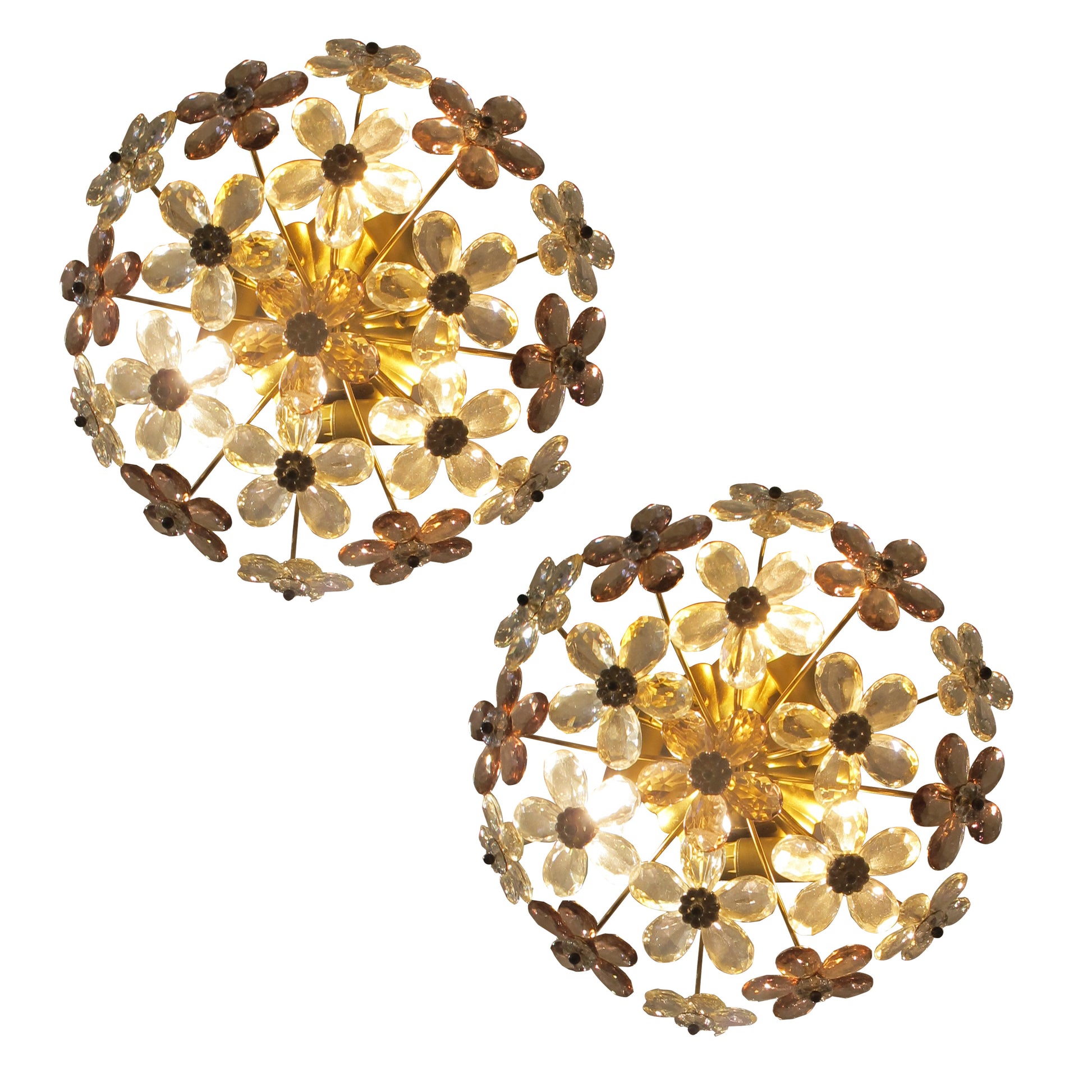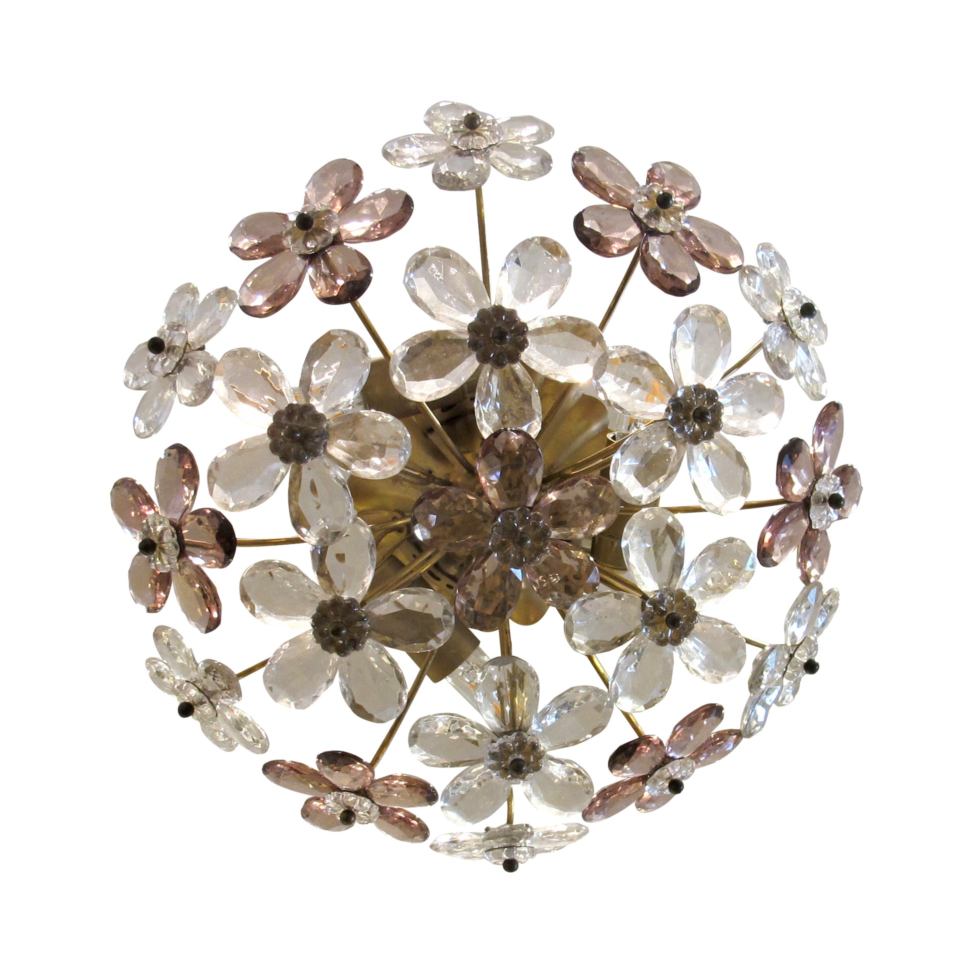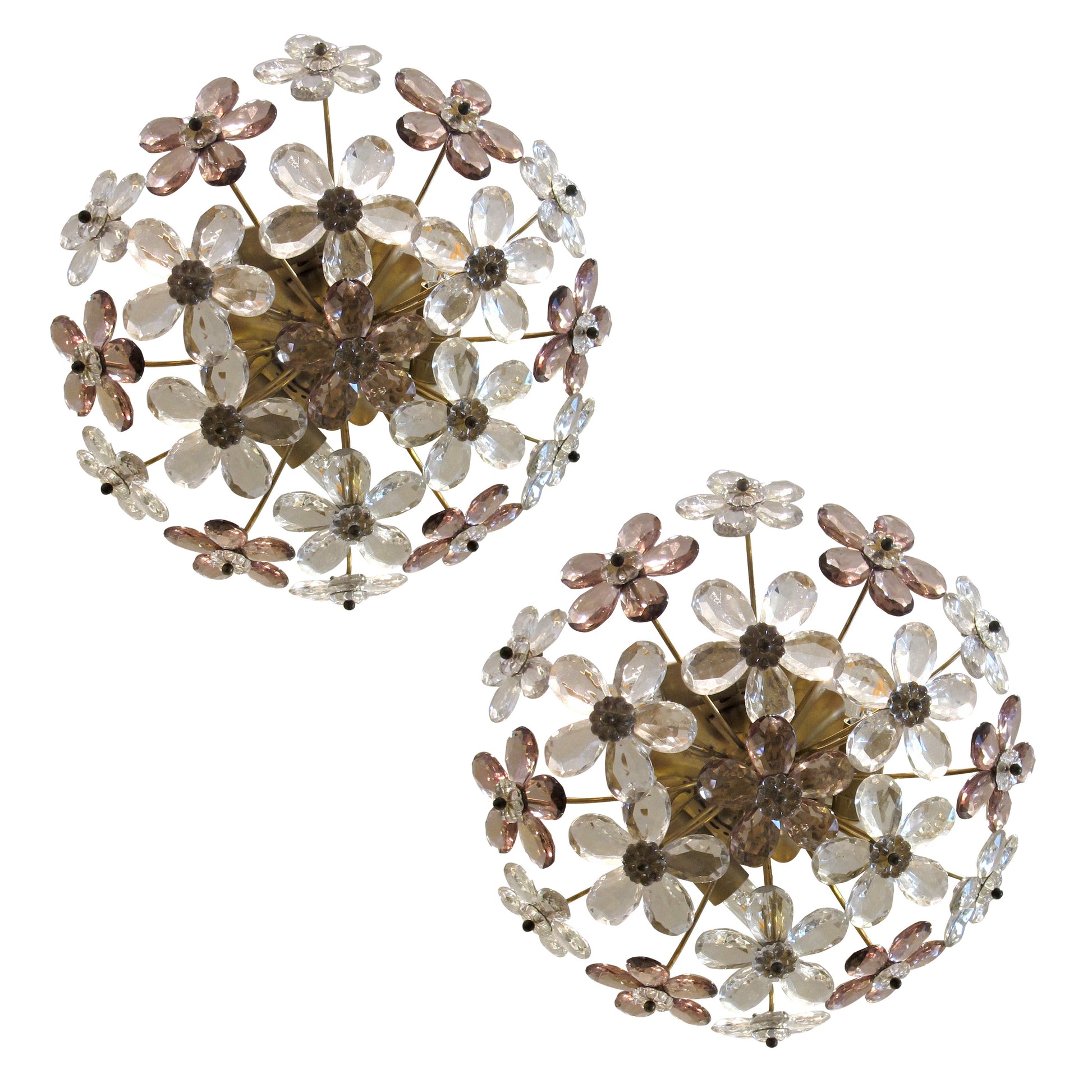 Pair of Maison Bagues Crystal Floral Ceiling Lights, French 1970