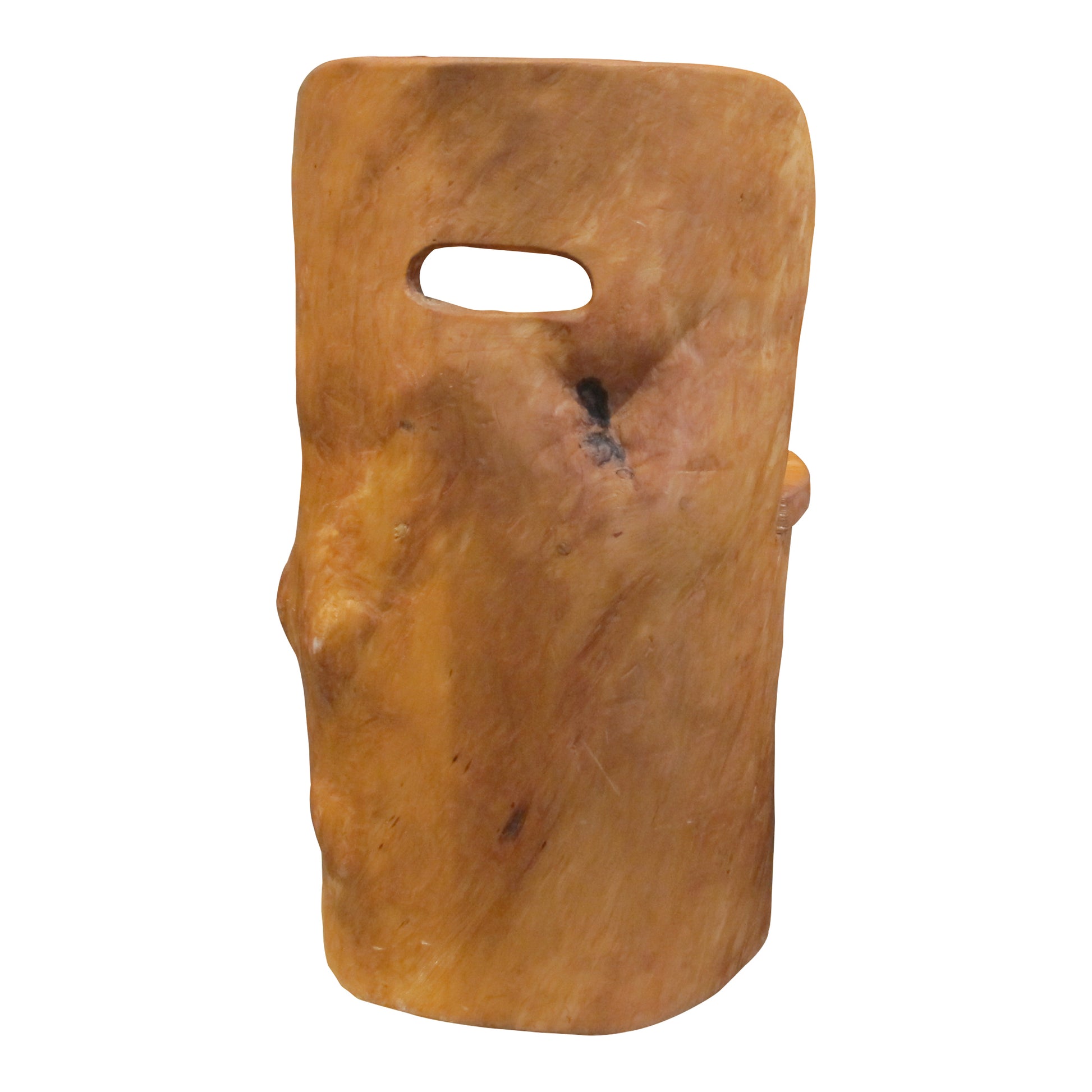 This charming pair of mid-century Swedish kubbestol pine stools showcases the traditional Scandinavian craft of carving furniture from a single solid tree trunk. Each stool retains the natural contours, knots, and grain patterns of the pine, giving them a warm organic character and a sculptural presence. The gently rounded seats and simple backrests reflect the rustic authenticity of Nordic design.