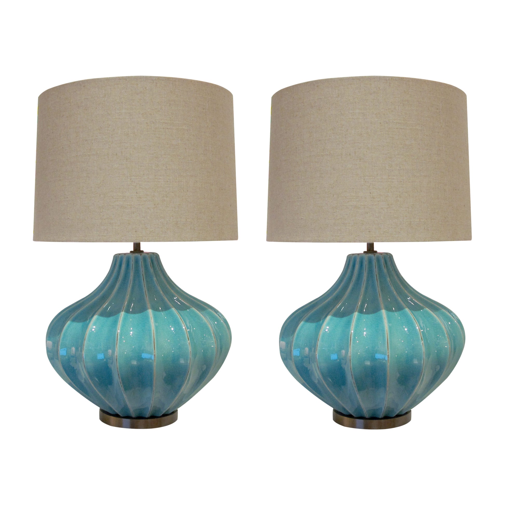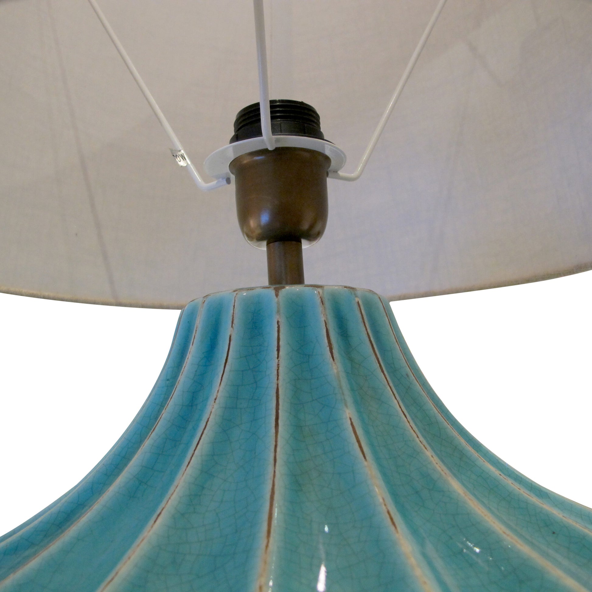 Pair of Turquoise Ceramic Crackled Glaze table lamps, circa 1980s, English